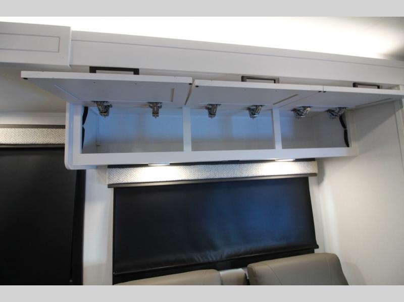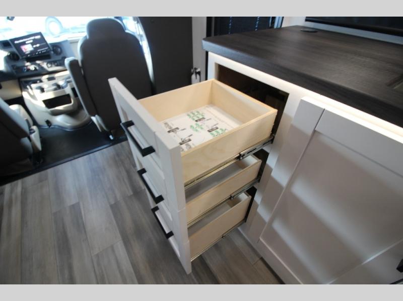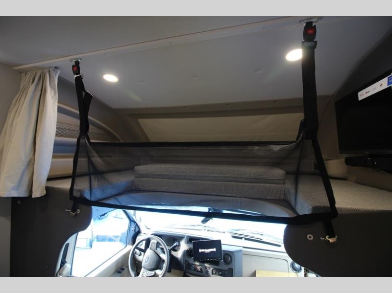 With any Greyhawk Class C gas motorhome by Jayco you will experience smooth sailing thanks to the JRIDE PLUS that comes with Koni shock absorbers, a computer-balanced driveshaft, Hellwig helper springs, and more. The Ford E-450 chassis with a 7.3L V8 325 HP engine will power your excursions, and you'll appreciate the added safety features for your peace of mind. Each model features a Sony infotainment center with Apple CarPlay and Android Auto, backup and side-view cameras, and a tire pressure monitor system the driver is sure to appreciate. Durable construction begins with Stronghold VBL roof, floor and sidewalls, bead-foam insulation, and a one-piece seamless fiberglass front cap. Head inside to find blackout night roller shades, LED-lit pressed countertops, an 84" interior ceiling height, and hardwood cabinet doors and drawers.