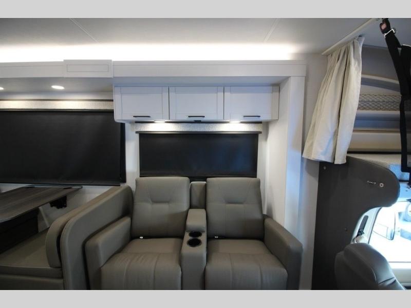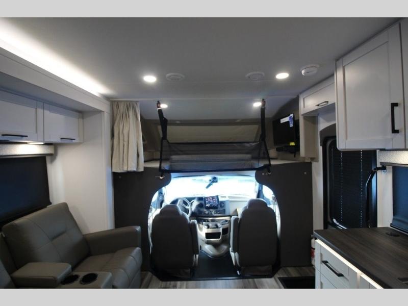 With any Greyhawk Class C gas motorhome by Jayco you will experience smooth sailing thanks to the JRIDE PLUS that comes with Koni shock absorbers, a computer-balanced driveshaft, Hellwig helper springs, and more. The Ford E-450 chassis with a 7.3L V8 325 HP engine will power your excursions, and you'll appreciate the added safety features for your peace of mind. Each model features a Sony infotainment center with Apple CarPlay and Android Auto, backup and side-view cameras, and a tire pressure monitor system the driver is sure to appreciate. Durable construction begins with Stronghold VBL roof, floor and sidewalls, bead-foam insulation, and a one-piece seamless fiberglass front cap. Head inside to find blackout night roller shades, LED-lit pressed countertops, an 84" interior ceiling height, and hardwood cabinet doors and drawers.