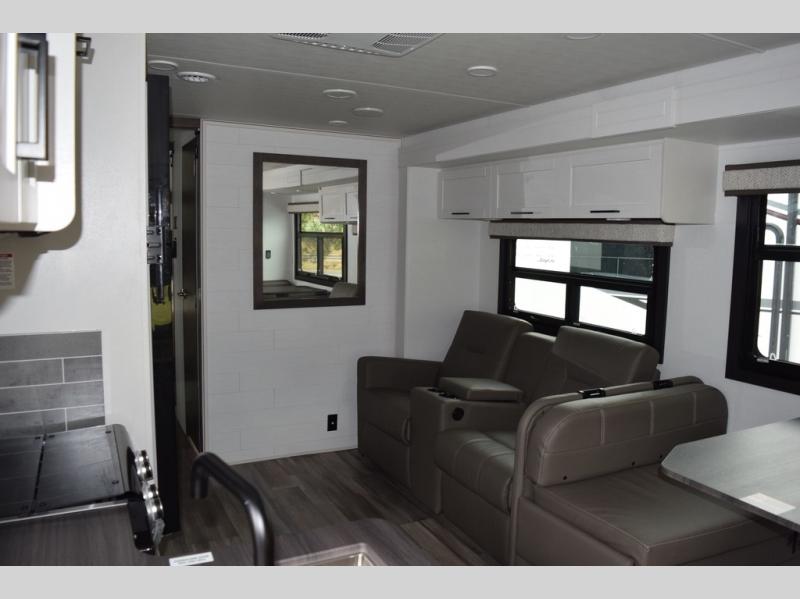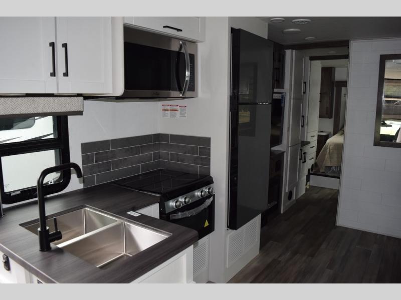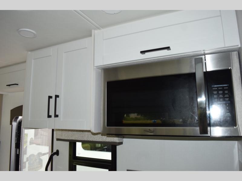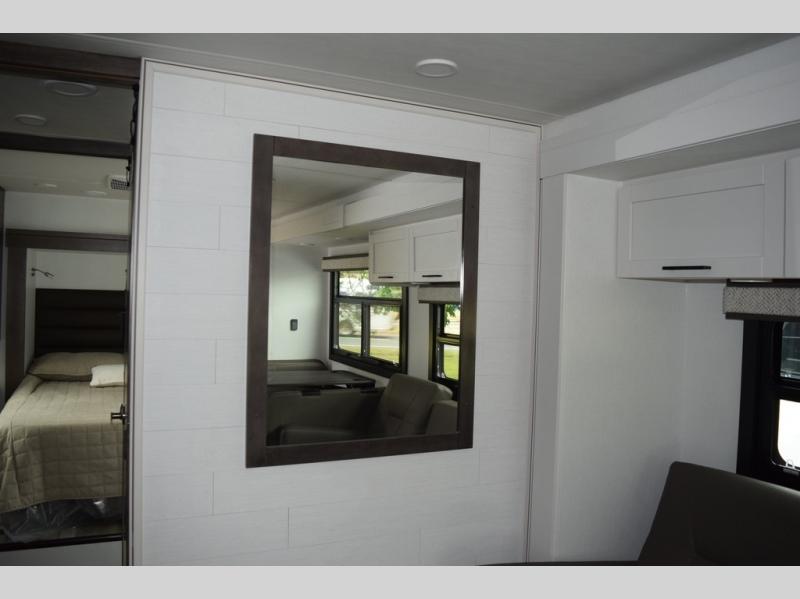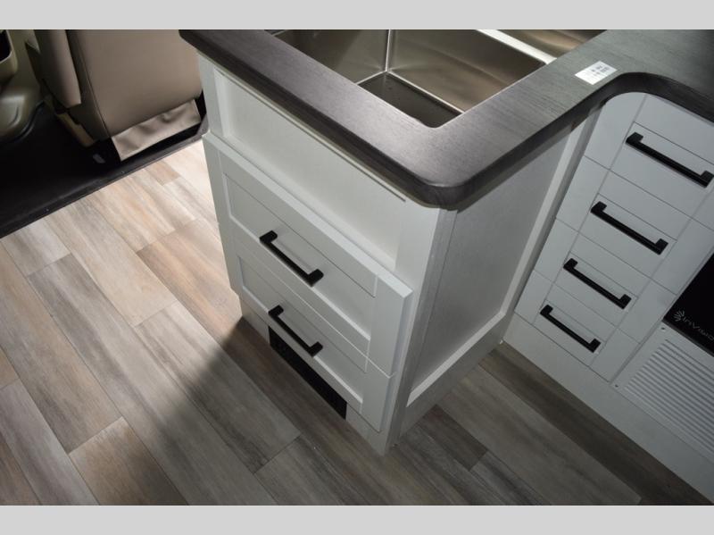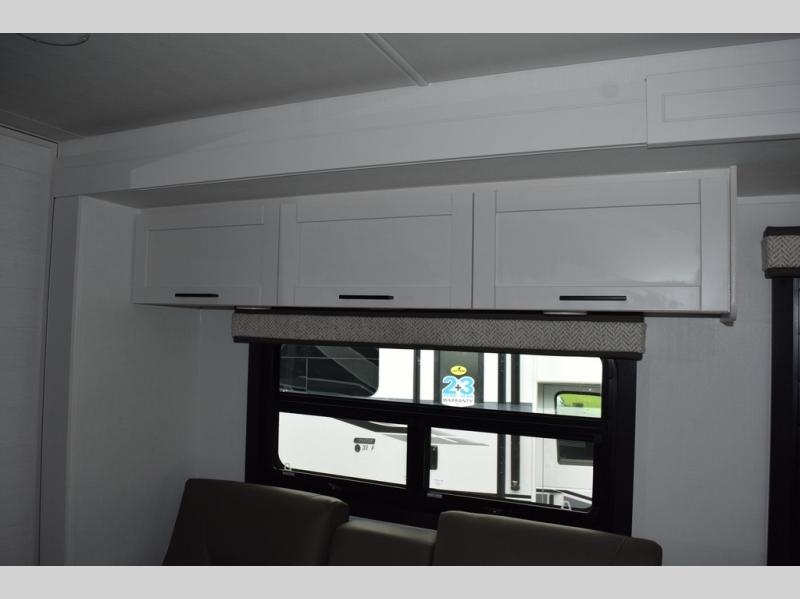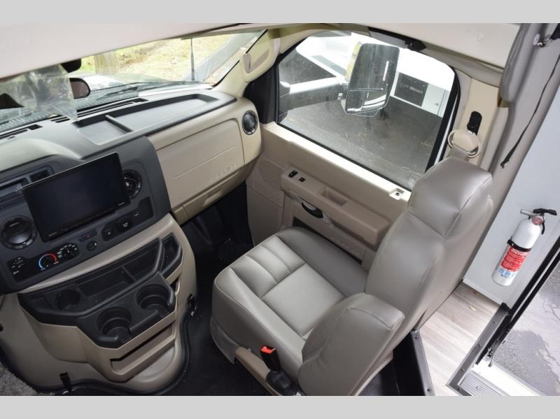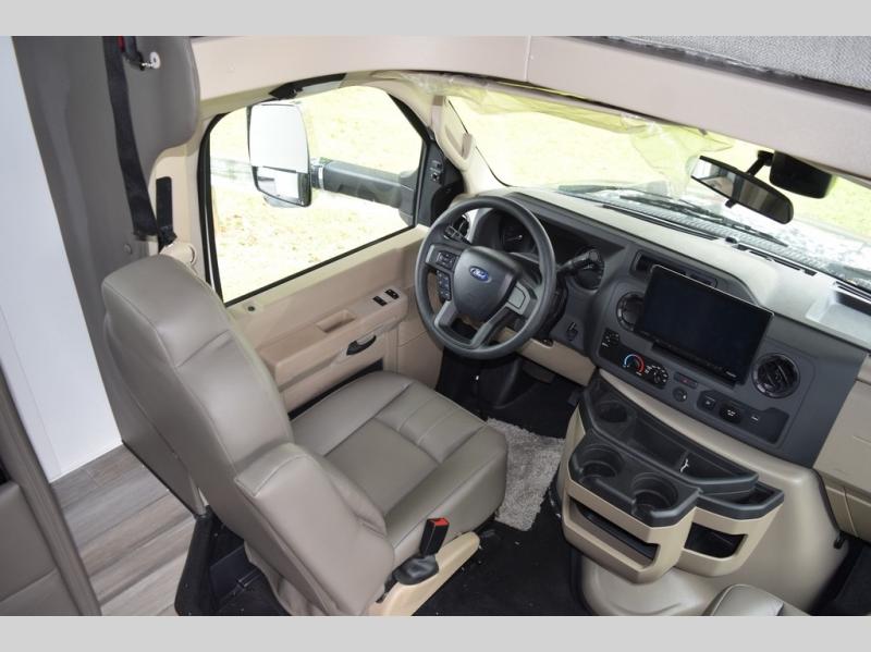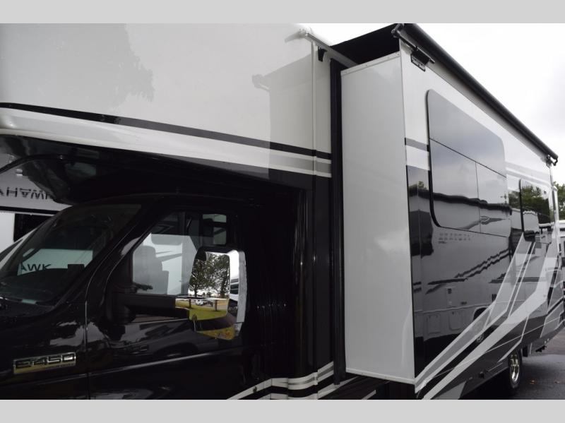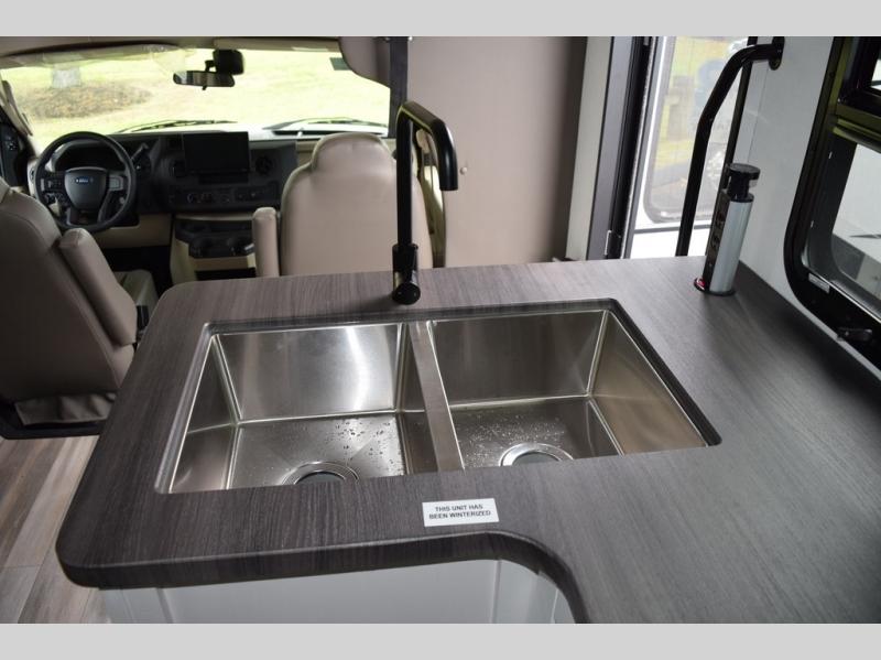 With any Greyhawk Class C gas motorhome by Jayco you will experience smooth sailing thanks to the JRIDE PLUS that comes with Koni shock absorbers, a computer-balanced driveshaft, Hellwig helper springs, and more. The Ford E-450 chassis with a 7.3L V8 325 HP engine will power your excursions, and you'll appreciate the added safety features for your peace of mind. Each model features a Sony infotainment center with Apple CarPlay and Android Auto, backup and side-view cameras, and a tire pressure monitor system the driver is sure to appreciate. Durable construction begins with Stronghold VBL roof, floor and sidewalls, bead-foam insulation, and a one-piece seamless fiberglass front cap. Head inside to find blackout night roller shades, LED-lit pressed countertops, an 84" interior ceiling height, and hardwood cabinet doors and drawers.