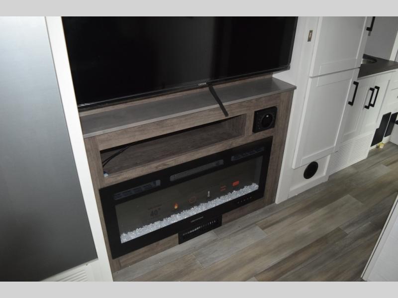 Pack your bags and head to your favorite camping spot in this spacious motorhome for six to seven. The little ones will love the cab-over bunk, and you'll have your own private bedroom in the back. There is also 72" theater seating and a 42" x 70" booth dinette that will serve as seating and sleeping space as well. This model will feel more like home with its fireplace, entertainment center with a 50" TV, and spacious living area. There is also a private toilet and shower, with the sink across the hall for convenience.