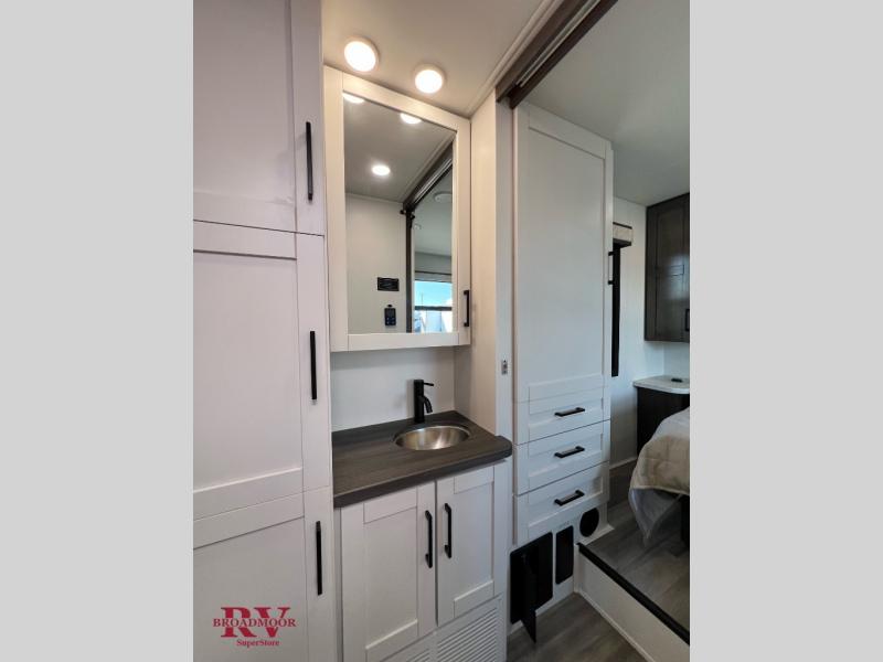 Optional Equipment Installed On This Unit: Midnight Paint Package, Customer Value Package, Bedroom TV, Dual 13.5 ACs, Blackout Appearance, Folding Windshield Sun Shade, Theater Seating Sofa