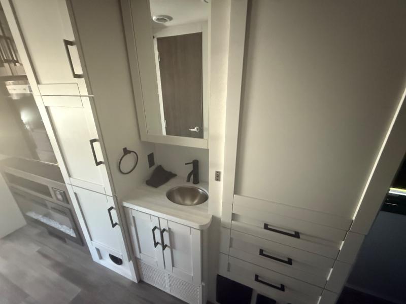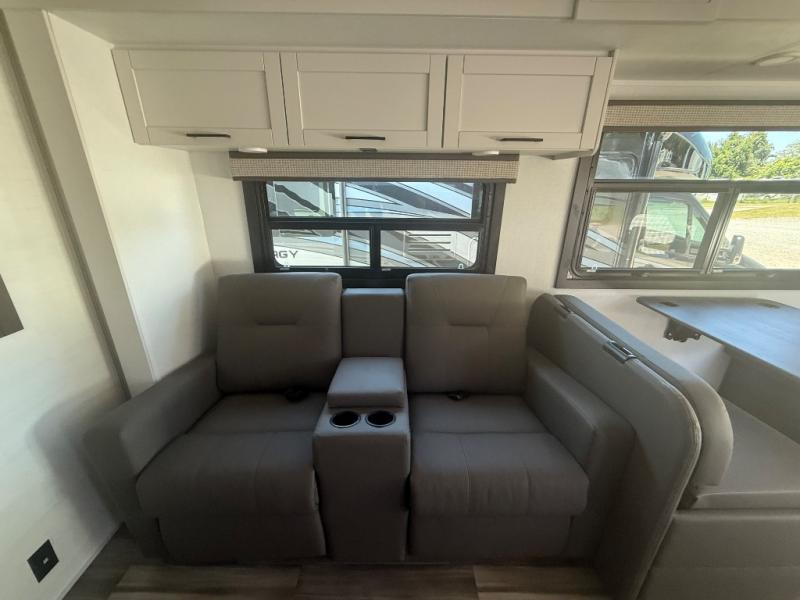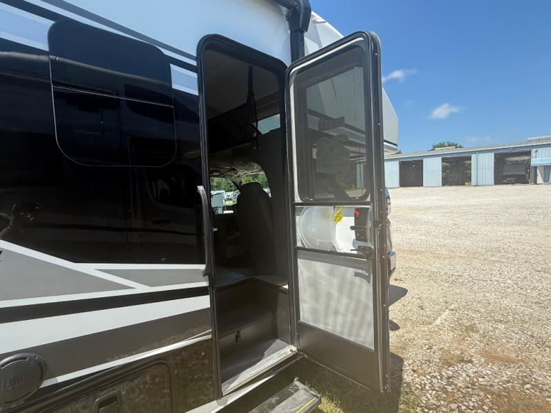 With any Greyhawk Class C gas motorhome by Jayco you will experience smooth sailing thanks to the JRIDE PLUS that comes with Koni shock absorbers, a computer-balanced driveshaft, Hellwig helper springs, and more. The Ford E-450 chassis with a 7.3L V8 325 HP engine will power your excursions, and you'll appreciate the added safety features for your peace of mind. Each model features a Sony infotainment center with Apple CarPlay and Android Auto, backup and side-view cameras, and a tire pressure monitor system the driver is sure to appreciate. Durable construction begins with Stronghold VBL roof, floor and sidewalls, bead-foam insulation, and a one-piece seamless fiberglass front cap. Head inside to find blackout night roller shades, LED-lit pressed countertops, an 84" interior ceiling height, and hardwood cabinet doors and drawers.