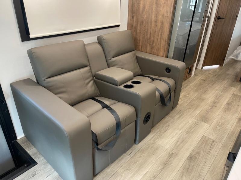 Outdoor Entertainment – Enjoy movies or music under the 20' electric awning with the built-in exterior entertainment center.