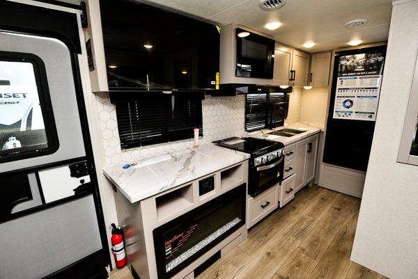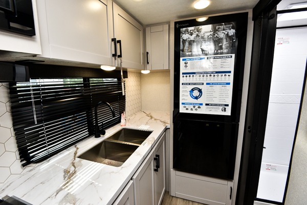 With any Jay Feather travel trailer by Jayco, you will enjoy lightweight towing, convenient exterior amenities, and at-home comforts inside! The Overlander 1 Solar Package included within the Jay Sport Package comes with a 200W solar panel and a 30-amp digital controller so you can enjoy some off-grid camping. There is also a modern graphics package with a dual-colored sidewall, LCI Solid Step fold-down aluminum tread steps on the main entry door, and Climate Shield 0 -100° F tested weather insulation package that will allow you to camp in all sorts of climates. The Customer Value Package will make time outdoors easier than ever with a power tongue jack and a Rock Solid stabilizer system, plus American-made nitro-filled Goodyear tires with self-adjusting electric brakes. More exterior features include a Keyed-Alike locking system, marine grade exterior speakers, a Magnum Truss roof system, and the list goes on! And we haven't even touched on the interior comforts, like the residential style seamless countertops and vinyl flooring throughout, decorative backsplash, handcrafted hardwood door/drawer fronts, and multiple USB charging ports to keep you going!
