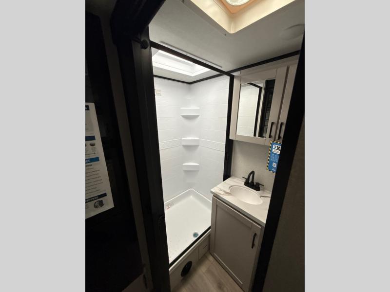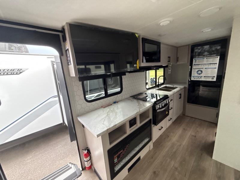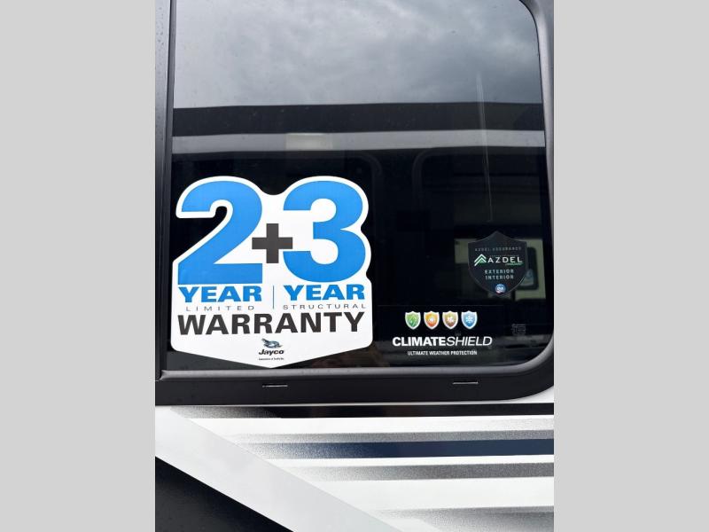 With any Jay Feather travel trailer by Jayco, you will enjoy lightweight towing, convenient exterior amenities, and at-home comforts inside! The Overlander 1 Solar Package included within the Jay Sport Package comes with a 200W solar panel and a 30-amp digital controller so you can enjoy some off-grid camping. There is also a modern graphics package with a dual-colored sidewall, LCI Solid Step fold-down aluminum tread steps on the main entry door, and Climate Shield 0 -100° F tested weather insulation package that will allow you to camp in all sorts of climates. The Customer Value Package will make time outdoors easier than ever with a power tongue jack and a Rock Solid stabilizer system, plus American-made nitro-filled Goodyear tires with self-adjusting electric brakes. More exterior features include a Keyed-Alike locking system, marine grade exterior speakers, a Magnum Truss roof system, and the list goes on! And we haven't even touched on the interior comforts, like the residential style seamless countertops and vinyl flooring throughout, decorative backsplash, handcrafted hardwood door/drawer fronts, and multiple USB charging ports to keep you going!