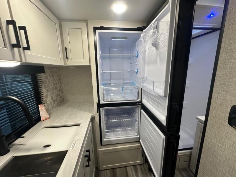 With any Jay Feather travel trailer by Jayco, you will enjoy lightweight towing, convenient exterior amenities, and at-home comforts inside! The Overlander 1 Solar Package included within the Jay Sport Package comes with a 200W solar panel and a 30-amp digital controller so you can enjoy some off-grid camping. There is also a modern graphics package with a dual-colored sidewall, LCI Solid Step fold-down aluminum tread steps on the main entry door, and Climate Shield 0 -100° F tested weather insulation package that will allow you to camp in all sorts of climates. The Customer Value Package will make time outdoors easier than ever with a power tongue jack and a Rock Solid stabilizer system, plus American-made nitro-filled Goodyear tires with self-adjusting electric brakes. More exterior features include a Keyed-Alike locking system, marine grade exterior speakers, a Magnum Truss roof system, and the list goes on! And we haven't even touched on the interior comforts, like the residential style seamless countertops and vinyl flooring throughout, decorative backsplash, handcrafted hardwood door/drawer fronts, and multiple USB charging ports to keep you going!