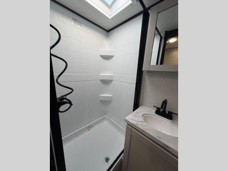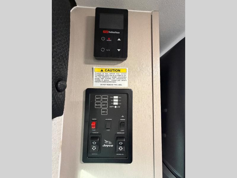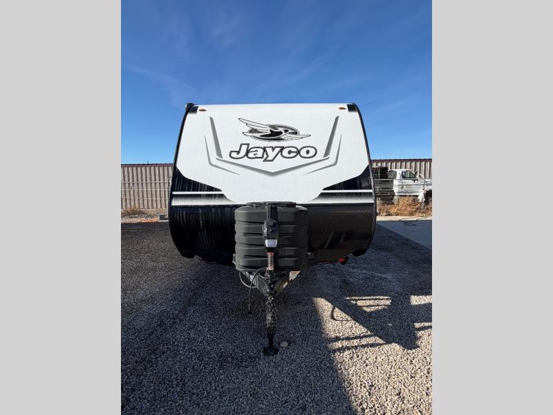 With any Jay Feather travel trailer by Jayco, you will enjoy lightweight towing, convenient exterior amenities, and at-home comforts inside! The Overlander 1 Solar Package included within the Jay Sport Package comes with a 200W solar panel and a 30-amp digital controller so you can enjoy some off-grid camping. There is also a modern graphics package, Solid fold-down step with aluminum tread steps on the main entry doorstep, and Climate Shield 0 -100° F tested weather insulation package that will allow you to camp in various types of climates. The Customer Value Package will make time outdoors easier than ever with a power tongue jack and Automotive-style aluminum rims, plus radial tires with self-adjusting electric brakes. More exterior features include a Keyed-Alike doors, a Magnum Truss roof system, and the list goes on! And we haven't even touched on the interior comforts, like the seamless countertops and Residential vinyl flooring throughout, decorative kitchen backsplash, handcrafted hardwood door/drawer fronts, and multiple USB charging ports to keep you going!
