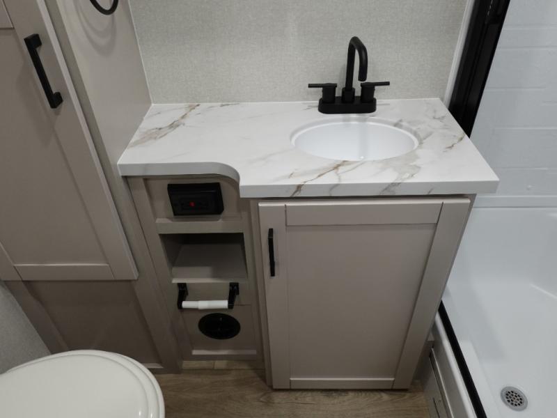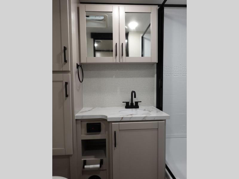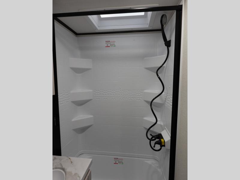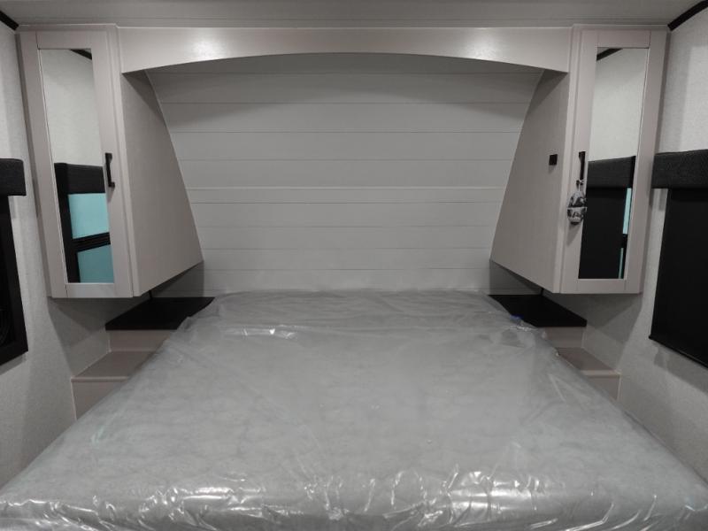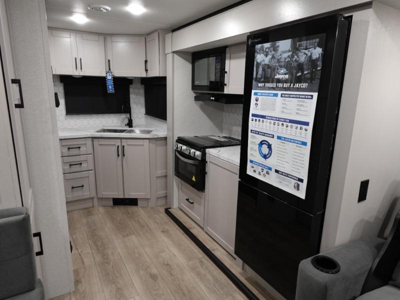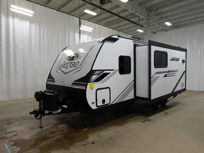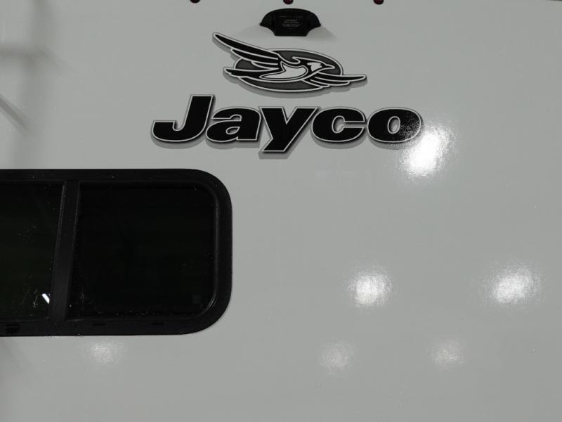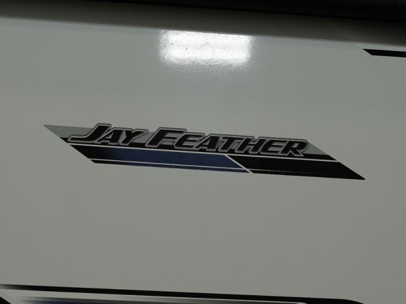With any Jay Feather travel trailer by Jayco, you will enjoy lightweight towing, convenient exterior amenities, and at-home comforts inside! The Overlander 1 Solar Package included within the Jay Sport Package comes with a 200W solar panel and a 30-amp digital controller so you can enjoy some off-grid camping. There is also a modern graphics package with a dual-colored sidewall, LCI Solid Step fold-down aluminum tread steps on the main entry door, and Climate Shield 0 -100° F tested weather insulation package that will allow you to camp in all sorts of climates. The Customer Value Package will make time outdoors easier than ever with a power tongue jack and a Rock Solid stabilizer system, plus American-made nitro-filled Goodyear tires with self-adjusting electric brakes. More exterior features include a Keyed-Alike locking system, marine grade exterior speakers, a Magnum Truss roof system, and the list goes on! And we haven't even touched on the interior comforts, like the residential style seamless countertops and vinyl flooring throughout, decorative backsplash, handcrafted hardwood door/drawer fronts, and multiple USB charging ports to keep you going!
