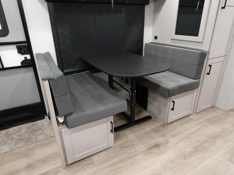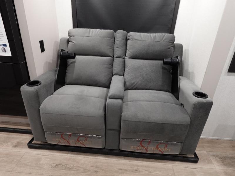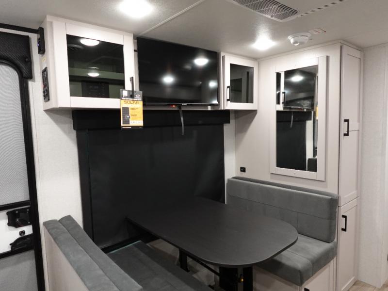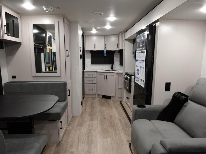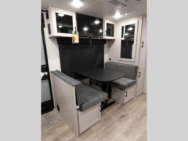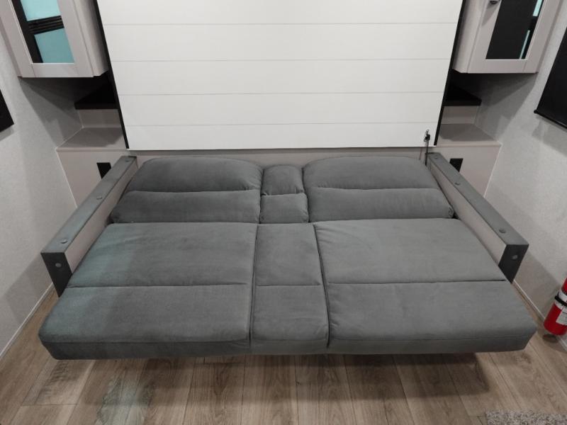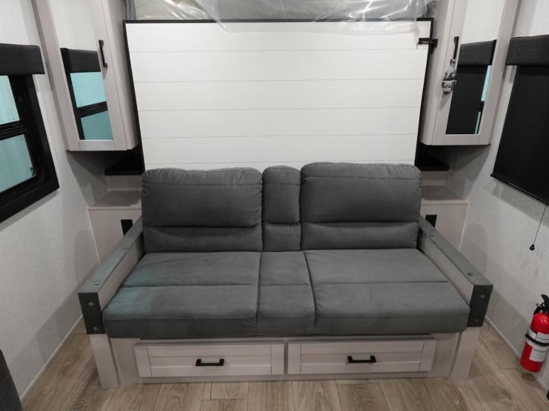 If you wish to escape the hustle and bustle of everyday life then you need this travel trailer! It features a front 60" x 75" Murphy bed with wardrobes on either side for bedtime and a jackknife sofa during the day. You can play games at the booth dinette after enjoying a delicious meal prepared with the three burner cooktop or relax at the theater seating with table trays and enjoy the LED TV. The rear corner bathroom has a shower with a skylight for you to get cleaned up in, as well as a linen closet to store your towels. There is exterior storage space to keep your outdoor gear, a 15' power awning to protect you from the elements.