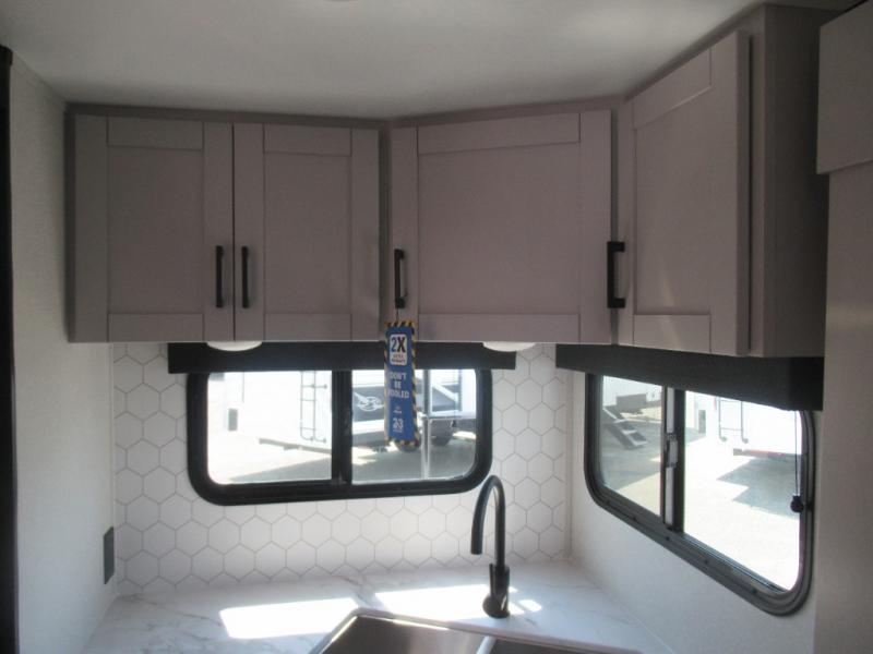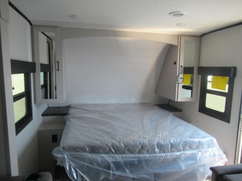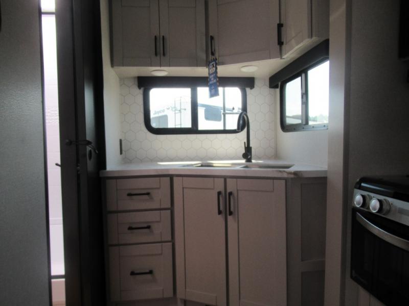 With any Jay Feather travel trailer by Jayco, you will enjoy lightweight towing, convenient exterior amenities, and at-home comforts inside! The Overlander 1 Solar Package included within the Jay Sport Package comes with a 200W solar panel and a 30-amp digital controller so you can enjoy some off-grid camping. There is also a modern graphics package with a dual-colored sidewall, LCI Solid Step fold-down aluminum tread steps on the main entry door, and Climate Shield 0 -100° F tested weather insulation package that will allow you to camp in all sorts of climates. The Customer Value Package will make time outdoors easier than ever with a power tongue jack and a Rock Solid stabilizer system, plus American-made nitro-filled Goodyear tires with self-adjusting electric brakes. More exterior features include a Keyed-Alike locking system, marine grade exterior speakers, a Magnum Truss roof system, and the list goes on! And we haven't even touched on the interior comforts, like the residential style seamless countertops and vinyl flooring throughout, decorative backsplash, handcrafted hardwood door/drawer fronts, and multiple USB charging ports to keep you going!