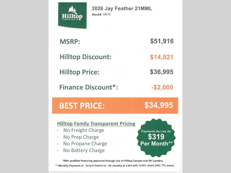New 2026 Jayco Jay Feather 21MML Travel Trailer