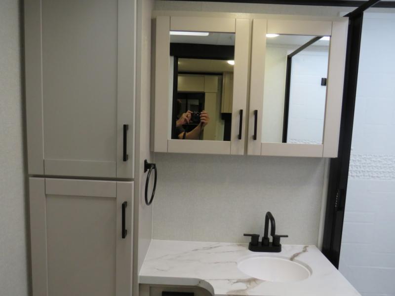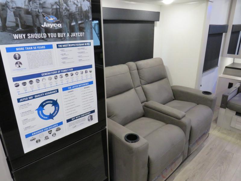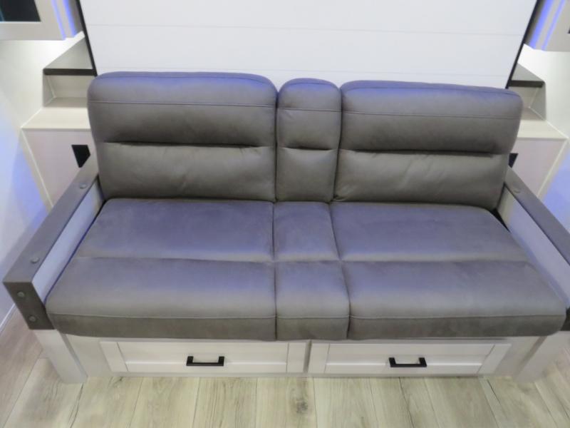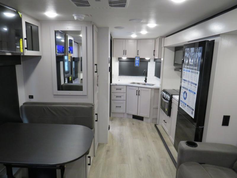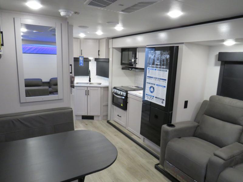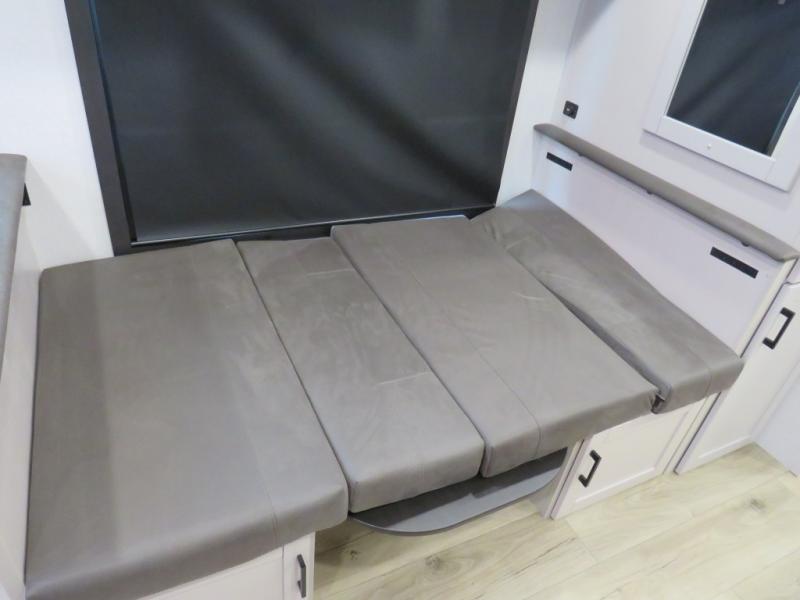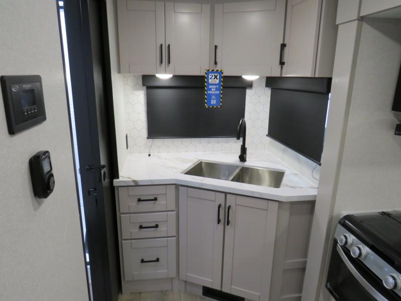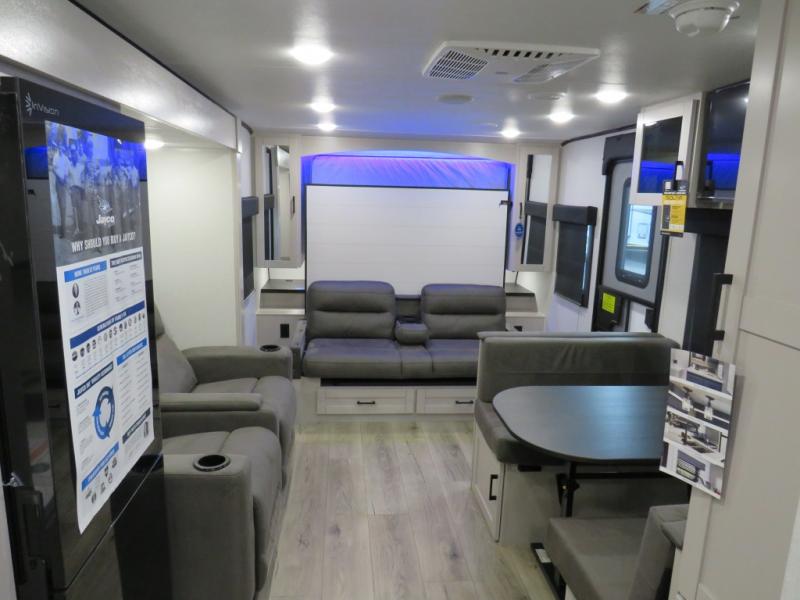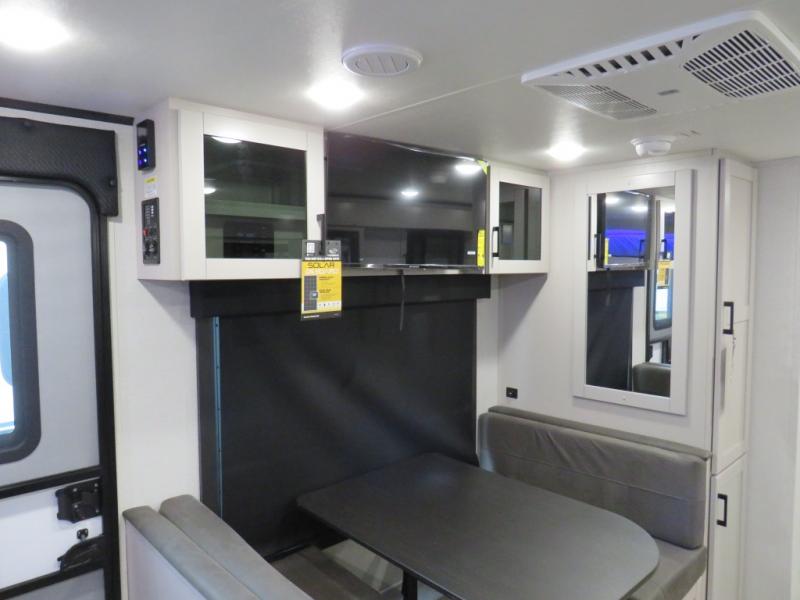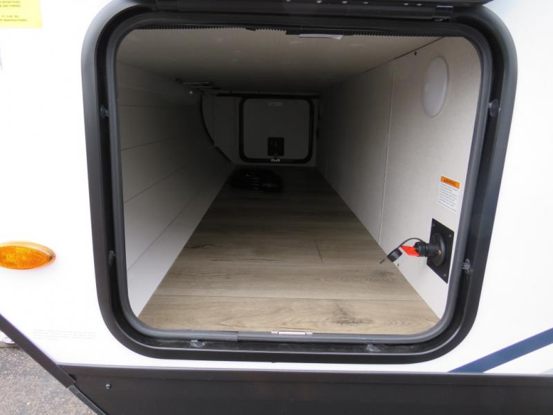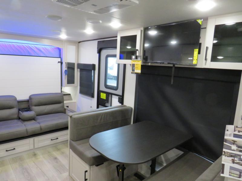 If you wish to escape the hustle and bustle of everyday life then you need this travel trailer! It features a front 60" x 75" Murphy bed with wardrobes on either side for bedtime and a jackknife sofa during the day. You can play games at the booth dinette after enjoying a delicious meal prepared with the three burner cooktop or relax at the theater seating with table trays and enjoy the LED TV. The rear corner bathroom has a shower with a skylight for you to get cleaned up in, as well as a linen closet to store your towels. There is exterior storage space to keep your outdoor gear, a 15' power awning to protect you from the elements.