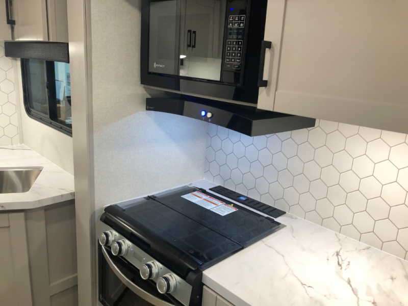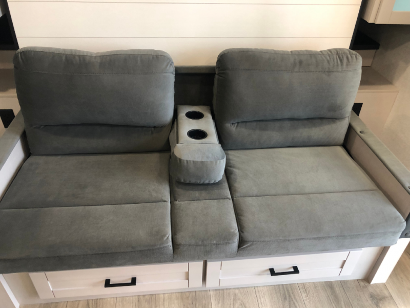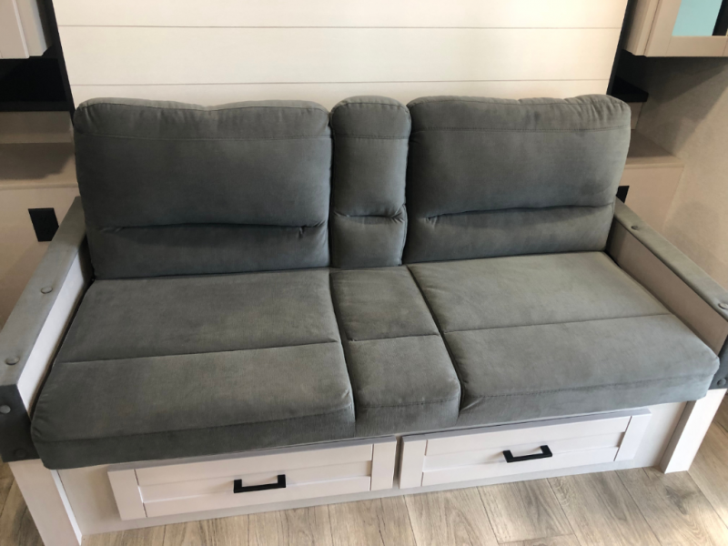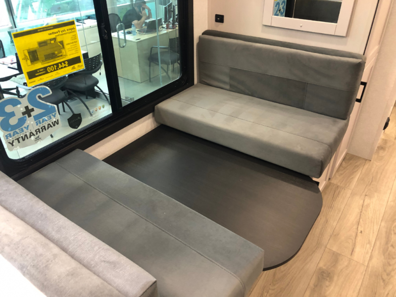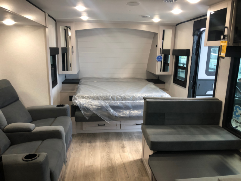 If you wish to escape the hustle and bustle of everyday life then you need this travel trailer! It features a front 60" x 75" Murphy bed with wardrobes on either side for bedtime and a jackknife sofa during the day. You can play games at the booth dinette after enjoying a delicious meal prepared with the three burner cooktop or relax at the theater seating with table trays and enjoy the LED TV. The rear corner bathroom has a shower with a skylight for you to get cleaned up in, as well as a linen closet to store your towels. There is exterior storage space to keep your outdoor gear, a 15' power awning to protect you from the elements.