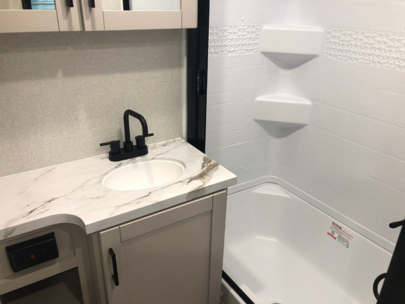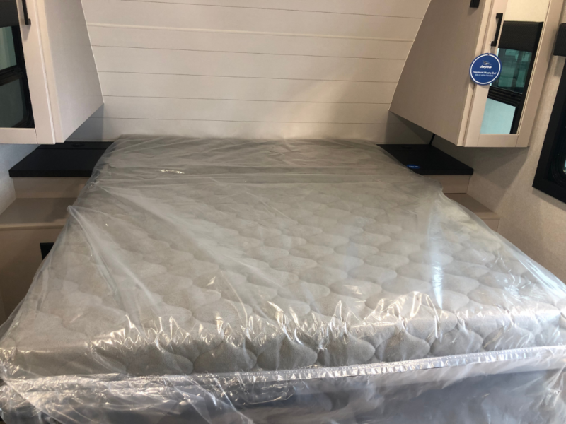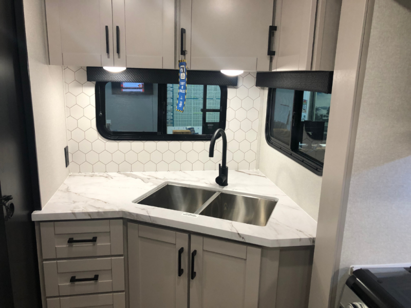 With any Jay Feather travel trailer by Jayco, you will enjoy lightweight towing, convenient exterior amenities, and at-home comforts inside! The Overlander 1 Solar Package included within the Jay Sport Package comes with a 200W solar panel and a 30-amp digital controller so you can enjoy some off-grid camping. There is also a modern graphics package with a dual-colored sidewall, LCI Solid Step fold-down aluminum tread steps on the main entry door, and Climate Shield 0 -100° F tested weather insulation package that will allow you to camp in all sorts of climates. The Customer Value Package will make time outdoors easier than ever with a power tongue jack and a Rock Solid stabilizer system, plus American-made nitro-filled Goodyear tires with self-adjusting electric brakes. More exterior features include a Keyed-Alike locking system, marine grade exterior speakers, a Magnum Truss roof system, and the list goes on! And we haven't even touched on the interior comforts, like the residential style seamless countertops and vinyl flooring throughout, decorative backsplash, handcrafted hardwood door/drawer fronts, and multiple USB charging ports to keep you going!