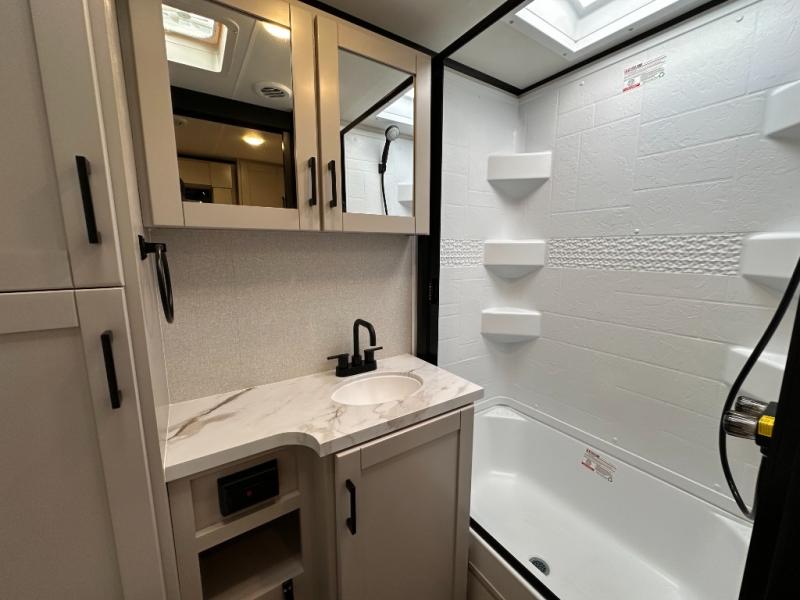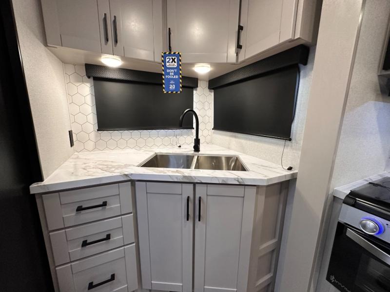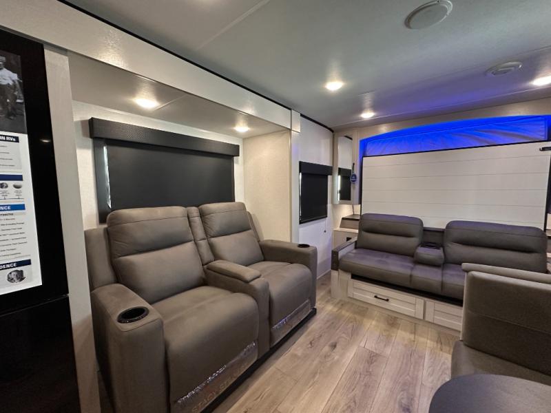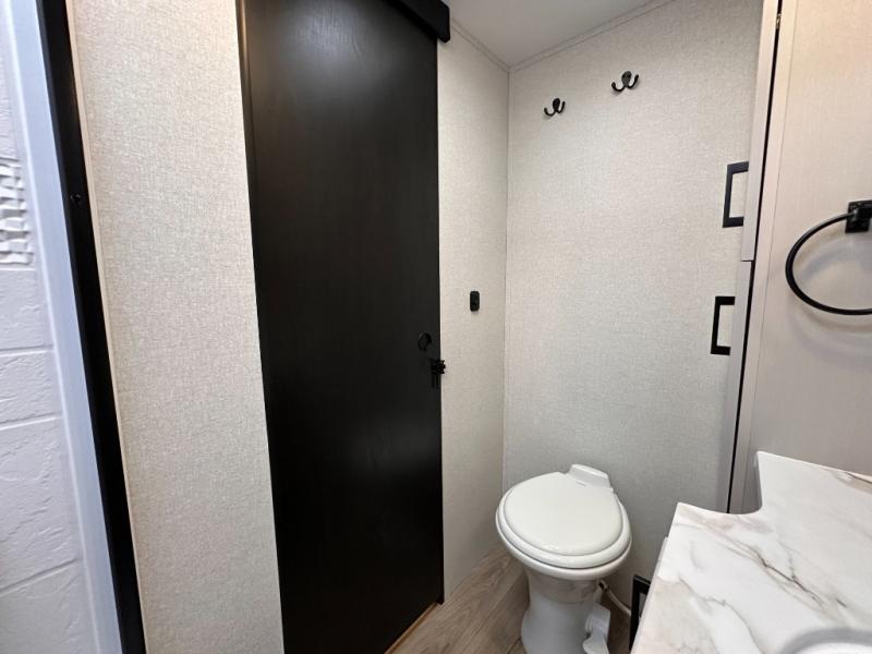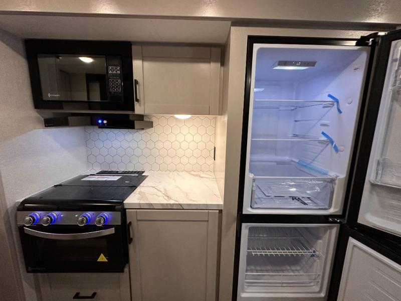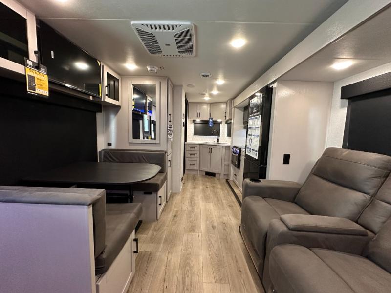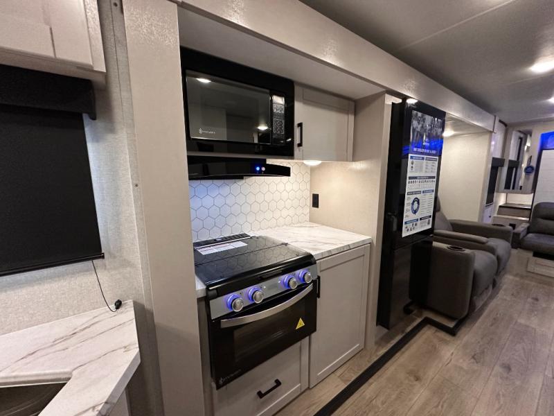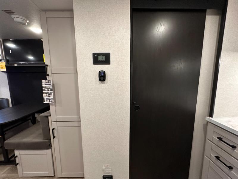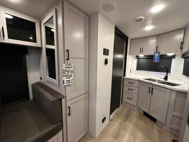 If you wish to escape the hustle and bustle of everyday life then you need this travel trailer! It features a front 60" x 75" Murphy bed with wardrobes on either side for bedtime and a jackknife sofa during the day. You can play games at the booth dinette after enjoying a delicious meal prepared with the three burner cooktop or relax at the theater seating with table trays and enjoy the LED TV. The rear corner bathroom has a shower with a skylight for you to get cleaned up in, as well as a linen closet to store your towels. There is exterior storage space to keep your outdoor gear, a 15' power awning to protect you from the elements.