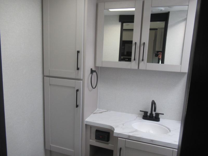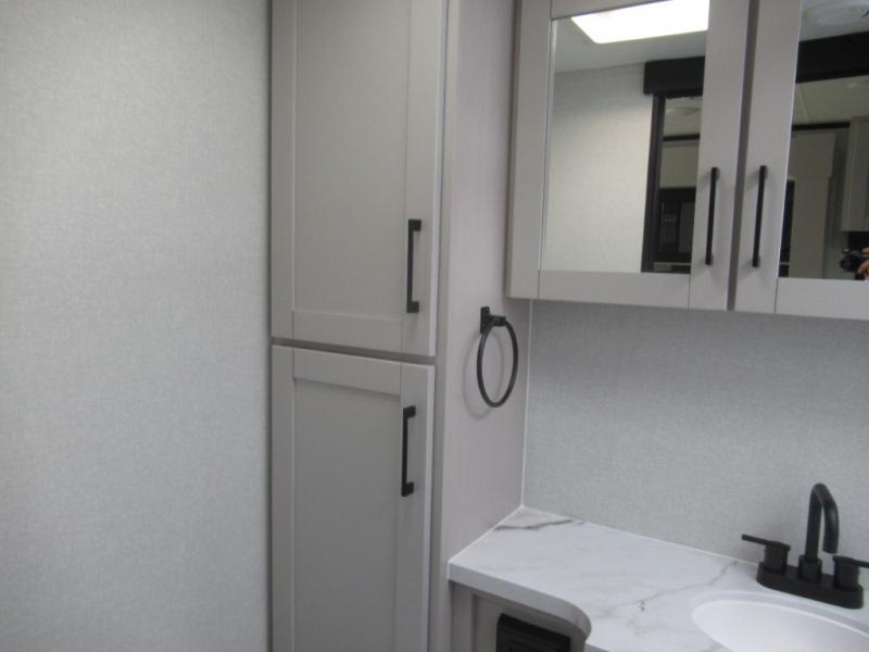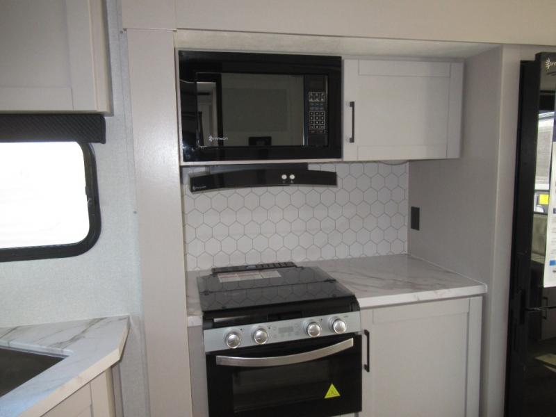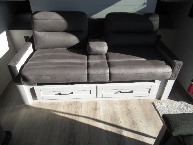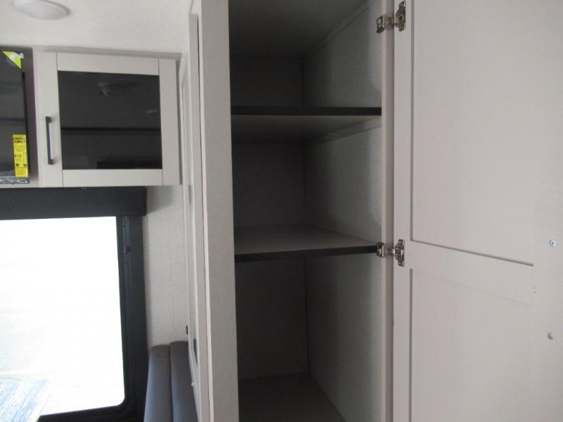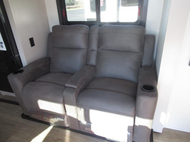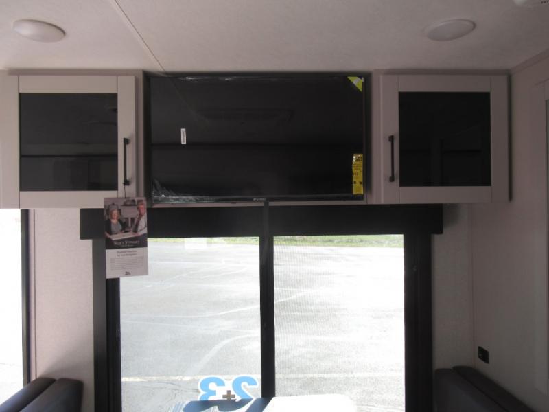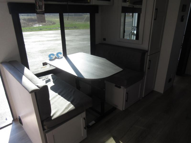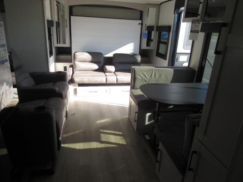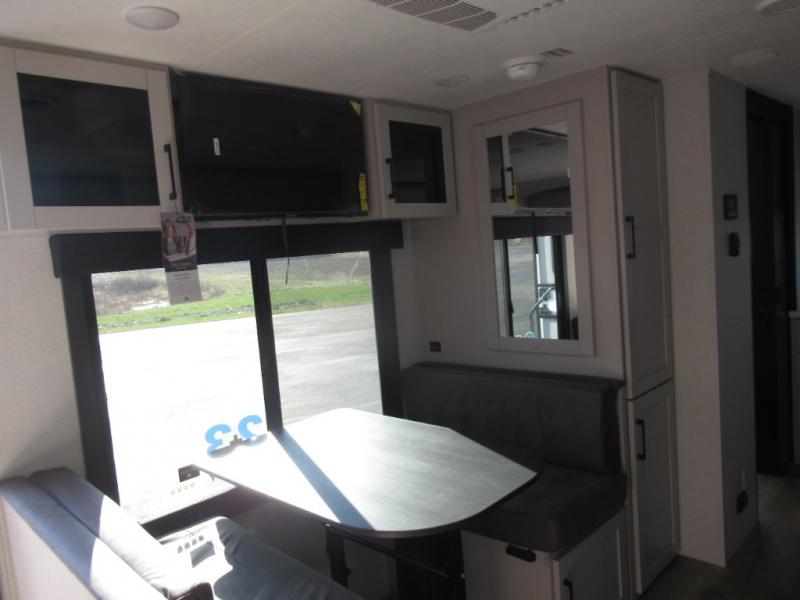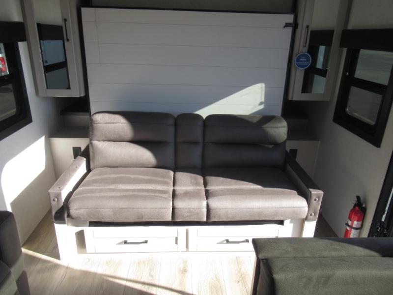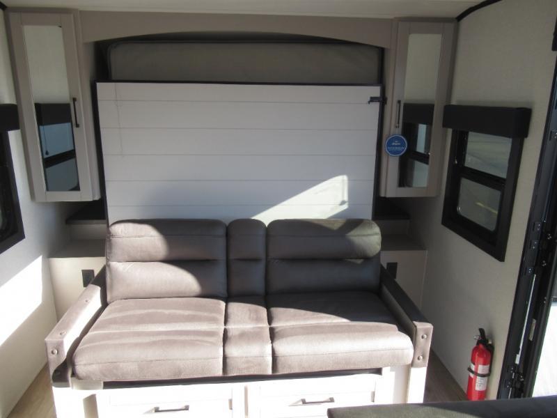 If you wish to escape the hustle and bustle of everyday life, then you need this travel trailer! It features a front Murphy bed with wardrobes on either side for bedtime and a jack-knife sofa during the day. You can play games at the booth dinette after enjoying a delicious meal prepared with the three burner cooktop or relax at the theater seating and enjoy the LED TV. The rear corner bathroom has a shower with a skylight for you to get cleaned up in, as well as a linen closet to store your towels. There is exterior storage space to keep your outdoor gear, a 15' power awning to protect you from the elements.