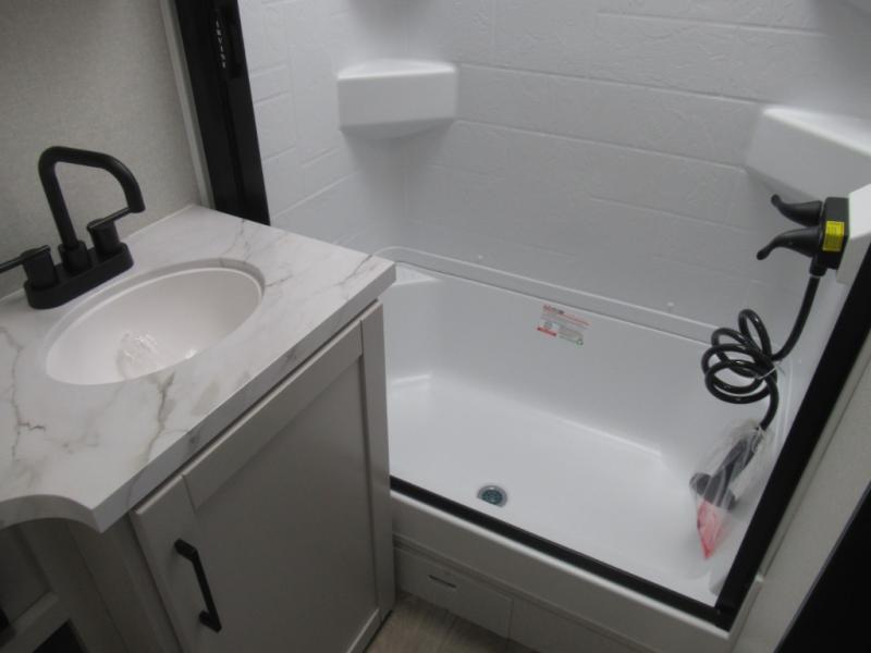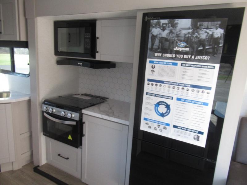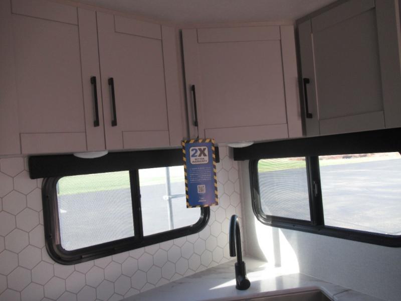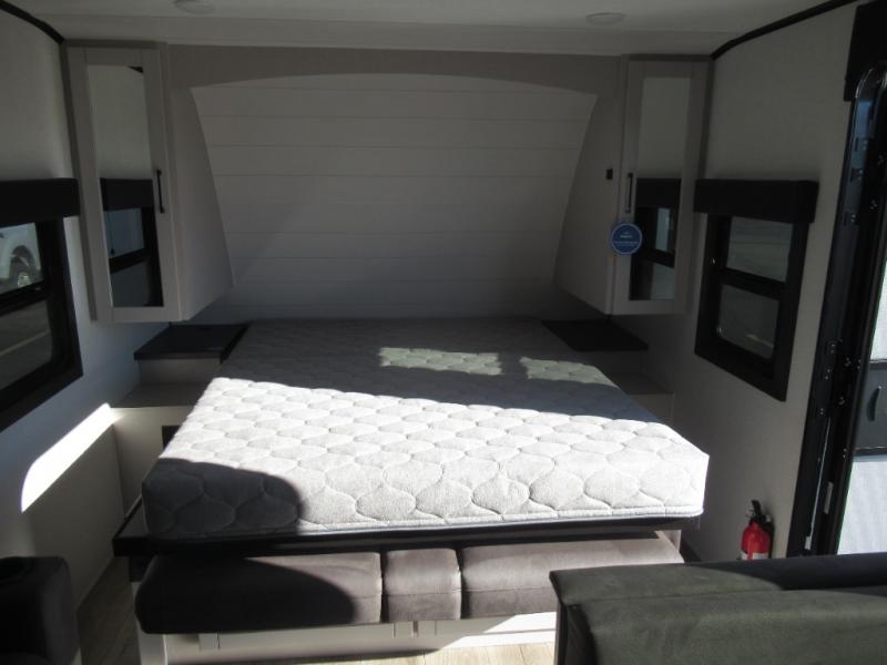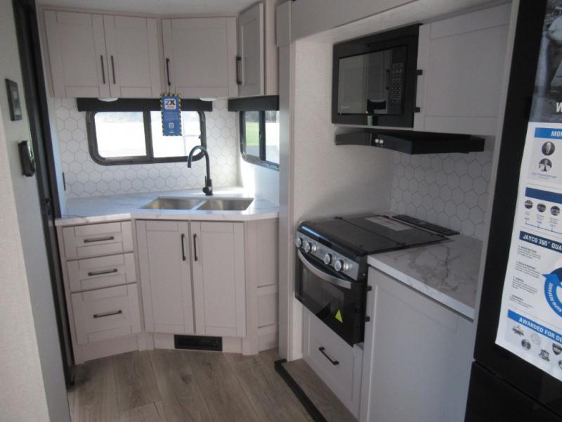 With any Jay Feather travel trailer by Jayco, you will enjoy lightweight towing, convenient exterior amenities, and at-home comforts inside! The Overlander 1 Solar Package included within the Jay Sport Package comes with a 200W solar panel and a 30-amp digital controller so you can enjoy some off-grid camping. There is also a modern graphics package, Solid fold-down step with aluminum tread steps on the main entry doorstep, and Climate Shield 0 -100° F tested weather insulation package that will allow you to camp in various types of climates. The Customer Value Package will make time outdoors easier than ever with a power tongue jack and Automotive-style aluminum rims, plus radial tires with self-adjusting electric brakes. More exterior features include a Keyed-Alike doors, a Magnum Truss roof system, and the list goes on! And we haven't even touched on the interior comforts, like the seamless countertops and Residential vinyl flooring throughout, decorative kitchen backsplash, handcrafted hardwood door/drawer fronts, and multiple USB charging ports to keep you going!