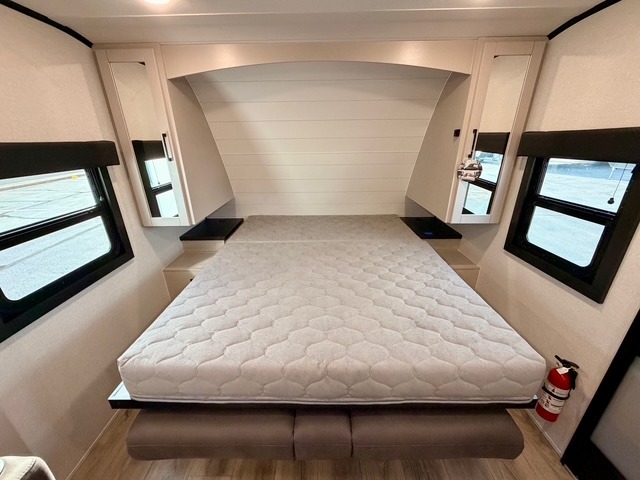 With any Jay Feather, you benefit from Jayco’s high-standard construction, including the Magnum Truss roof system—the strongest tested roof in the industry—and a fully integrated A-frame. The Climate Shield package ensures you stay comfortable year-round, as the unit is tested to withstand temperatures from 0° to 100° F. Setting up camp is safe and stable with the Solid Step aluminum fold-down entry and a power tongue jack.
