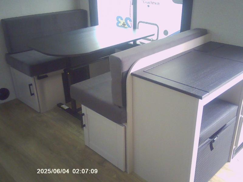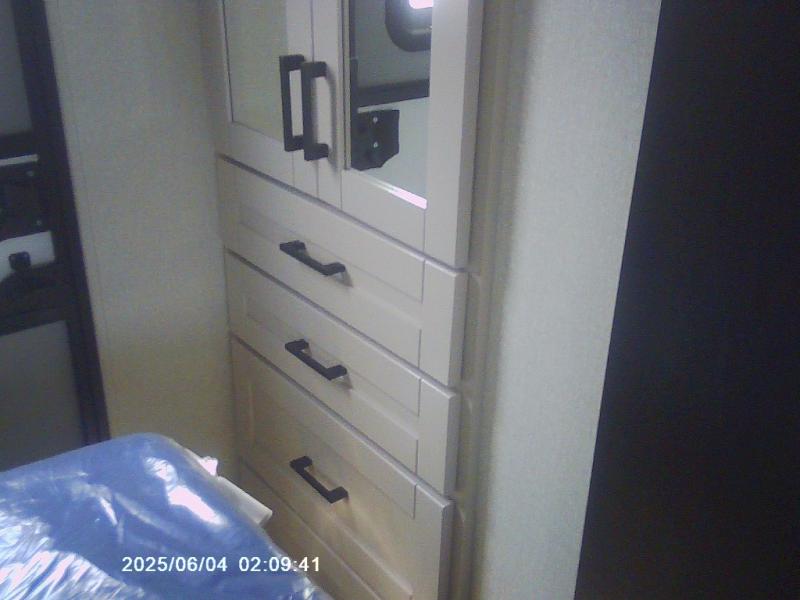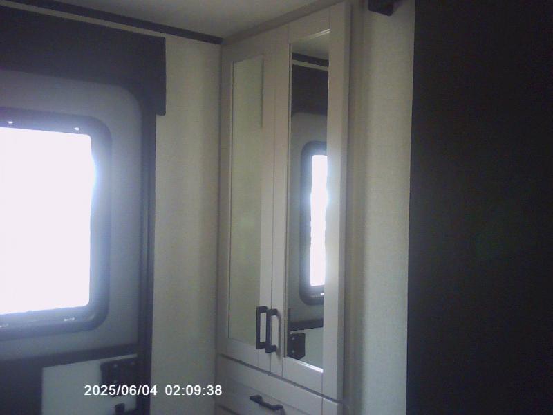 The chef of your group will love this rear kitchen trailer with generous counter space to prep meals! Your crew can dine at the booth dinette or under the 20' power awning with LED lights, and when you're ready to relax, the theater seat with table trays will provide comfort. There is also a storage/desk cabinet with a pull-out ottoman that will allow you to utilize this space however you need it! The spacious full bath will let you clean up each day, and the front private bedroom is sure to make you feel at home. Here, you'll find a queen bed, three wardrobes, plus one of the dual entry doors for added convenience!