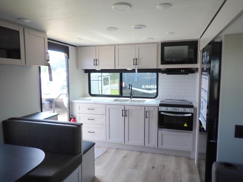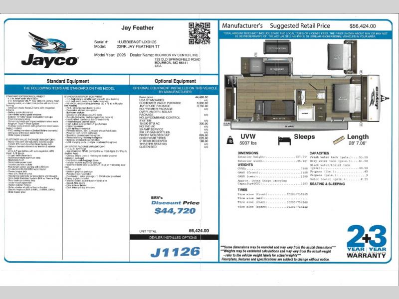 The Jay Feather 23RK would be an excellent choice for a couple or small family. Huge rear kitchen, two exterior doors, theater seating are just a few stand out features of the 23RK. Half-ton towable.
