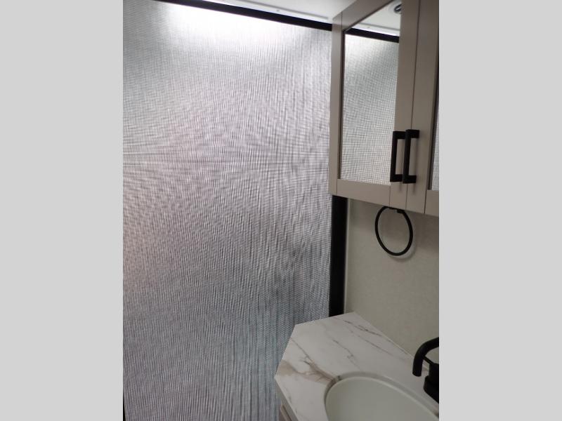 With any Jay Feather travel trailer by Jayco, you will enjoy lightweight towing, convenient exterior amenities, and at-home comforts inside! The Overlander 1 Solar Package included within the Jay Sport Package comes with a 200W solar panel and a 30-amp digital controller so you can enjoy some off-grid camping. There is also a modern graphics package with a dual-colored sidewall, LCI Solid Step fold-down aluminum tread steps on the main entry door, and Climate Shield 0 -100° F tested weather insulation package that will allow you to camp in all sorts of climates. The Customer Value Package will make time outdoors easier than ever with a power tongue jack and a Rock Solid stabilizer system, plus American-made nitro-filled Goodyear tires with self-adjusting electric brakes. More exterior features include a Keyed-Alike locking system, marine grade exterior speakers, a Magnum Truss roof system, and the list goes on! And we haven't even touched on the interior comforts, like the residential style seamless countertops and vinyl flooring throughout, decorative backsplash, handcrafted hardwood door/drawer fronts, and multiple USB charging ports to keep you going!
