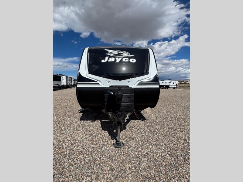 With any Jay Feather travel trailer by Jayco, you will enjoy lightweight towing, convenient exterior amenities, and at-home comforts inside! The Overlander 1 Solar Package included within the Jay Sport Package comes with a 200W solar panel and a 30-amp digital controller so you can enjoy some off-grid camping. There is also a modern graphics package with a dual-colored sidewall, LCI Solid Step fold-down aluminum tread steps on the main entry door, and Climate Shield 0 -100° F tested weather insulation package that will allow you to camp in all sorts of climates. The Customer Value Package will make time outdoors easier than ever with a power tongue jack and a Rock Solid stabilizer system, plus American-made nitro-filled Goodyear tires with self-adjusting electric brakes. More exterior features include a Keyed-Alike locking system, marine grade exterior speakers, a Magnum Truss roof system, and the list goes on! And we haven't even touched on the interior comforts, like the residential style seamless countertops and vinyl flooring throughout, decorative backsplash, handcrafted hardwood door/drawer fronts, and multiple USB charging ports to keep you going!