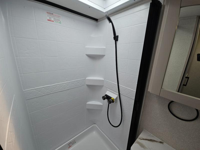 With any Jay Feather travel trailer by Jayco, you will enjoy lightweight towing, convenient exterior amenities, and at-home comforts inside! The Overlander 1 Solar Package included within the Jay Sport Package comes with a 200W solar panel and a 30-amp digital controller so you can enjoy some off-grid camping. There is also a modern graphics package with a dual-colored sidewall, LCI Solid Step fold-down aluminum tread steps on the main entry door, and Climate Shield 0 -100° F tested weather insulation package that will allow you to camp in all sorts of climates. The Customer Value Package will make time outdoors easier than ever with a power tongue jack and a Rock Solid stabilizer system, plus American-made nitro-filled Goodyear tires with self-adjusting electric brakes. More exterior features include a Keyed-Alike locking system, marine grade exterior speakers, a Magnum Truss roof system, and the list goes on! And we haven't even touched on the interior comforts, like the residential style seamless countertops and vinyl flooring throughout, decorative backsplash, handcrafted hardwood door/drawer fronts, and multiple USB charging ports to keep you going!