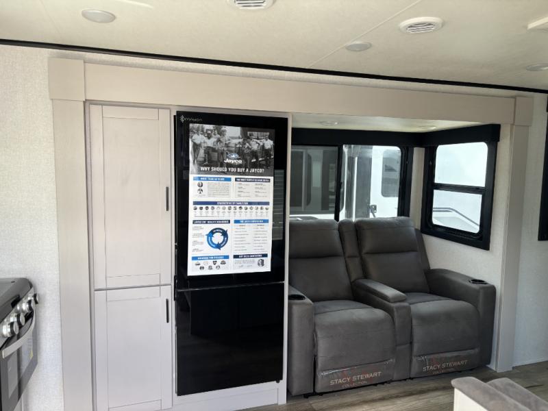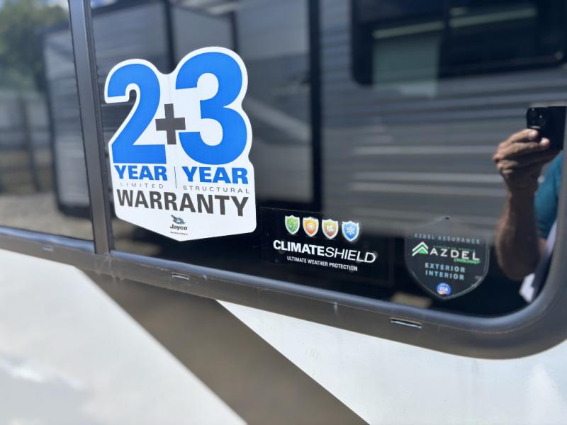 With any Jay Feather travel trailer by Jayco, you will enjoy lightweight towing, convenient exterior amenities, and at-home comforts inside! The Overlander 1 Solar Package included within the Jay Sport Package comes with a 200W solar panel and a 30-amp digital controller so you can enjoy some off-grid camping. There is also a modern graphics package with a dual-colored sidewall, LCI Solid Step fold-down aluminum tread steps on the main entry door, and Climate Shield 0 -100° F tested weather insulation package that will allow you to camp in all sorts of climates. The Customer Value Package will make time outdoors easier than ever with a power tongue jack and a Rock Solid stabilizer system, plus American-made nitro-filled Goodyear tires with self-adjusting electric brakes. More exterior features include a Keyed-Alike locking system, marine grade exterior speakers, a Magnum Truss roof system, and the list goes on! And we haven't even touched on the interior comforts, like the residential style seamless countertops and vinyl flooring throughout, decorative backsplash, handcrafted hardwood door/drawer fronts, and multiple USB charging ports to keep you going!