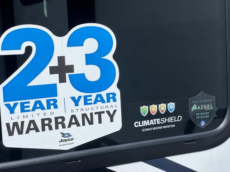 With any Jay Feather travel trailer by Jayco, you will enjoy lightweight towing, convenient exterior amenities, and at-home comforts inside! The Overlander 1 Solar Package included within the Jay Sport Package comes with a 200W solar panel and a 30-amp digital controller so you can enjoy some off-grid camping. There is also a modern graphics package with a dual-colored sidewall, LCI Solid Step fold-down aluminum tread steps on the main entry door, and Climate Shield 0 -100° F tested weather insulation package that will allow you to camp in all sorts of climates. The Customer Value Package will make time outdoors easier than ever with a power tongue jack and a Rock Solid stabilizer system, plus American-made nitro-filled Goodyear tires with self-adjusting electric brakes. More exterior features include a Keyed-Alike locking system, marine grade exterior speakers, a Magnum Truss roof system, and the list goes on! And we haven't even touched on the interior comforts, like the residential style seamless countertops and vinyl flooring throughout, decorative backsplash, handcrafted hardwood door/drawer fronts, and multiple USB charging ports to keep you going!