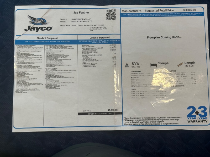 New 2026 Jayco Jay Feather 24 FK Travel Trailer