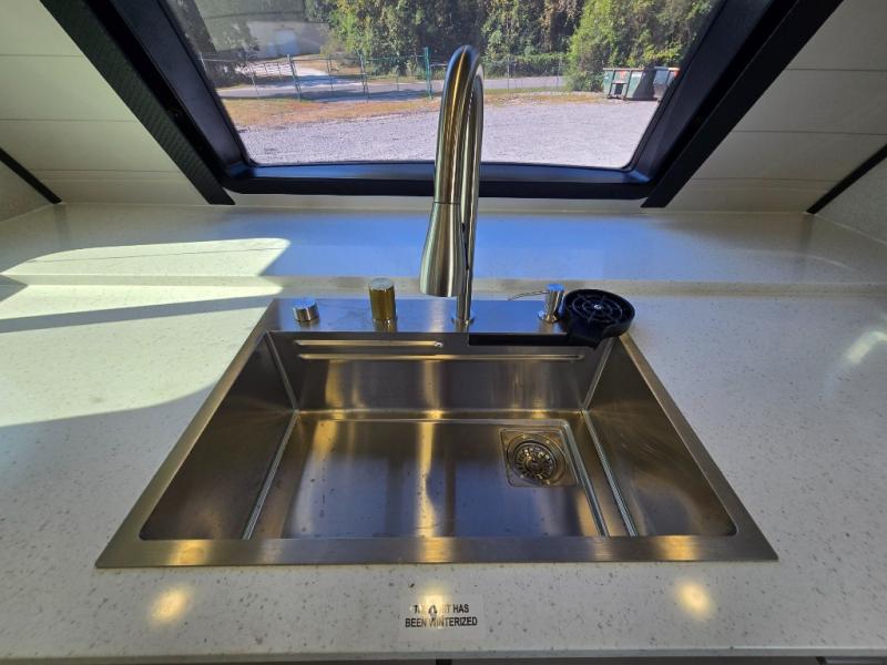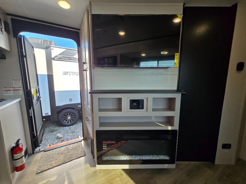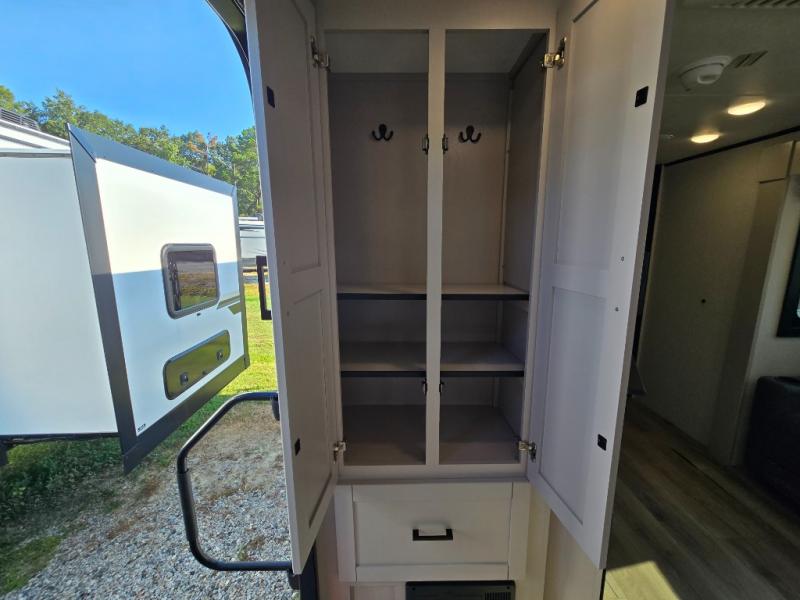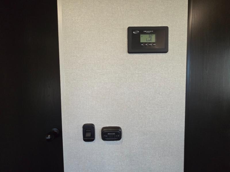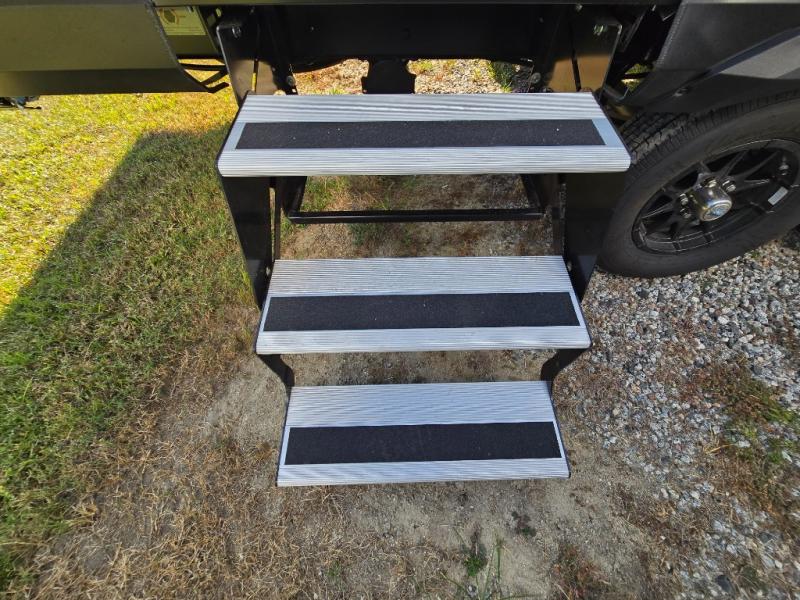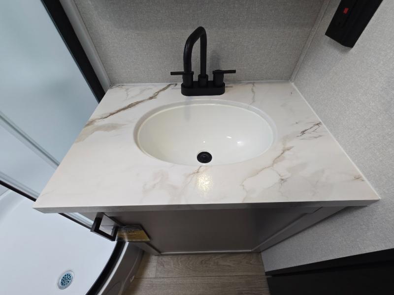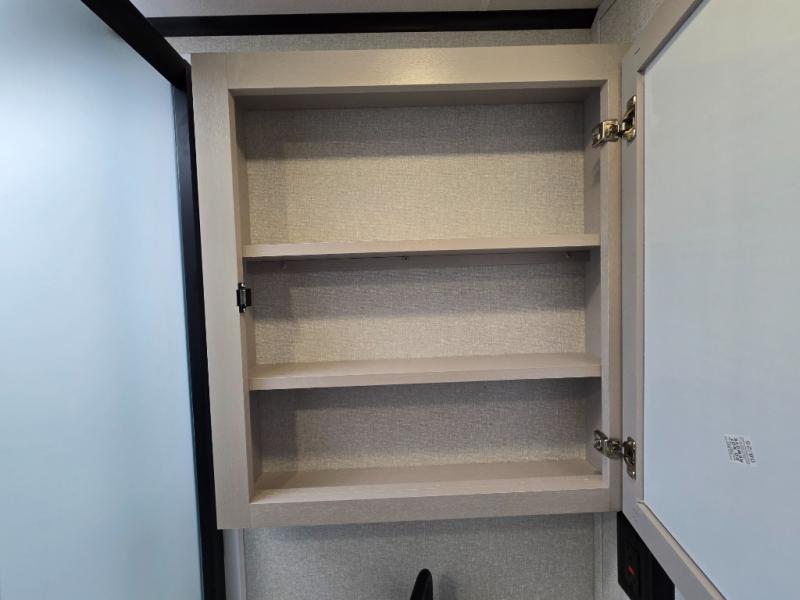At the rear, the private bedroom provides a peaceful retreat with a 60" x 80" queen bed, a sliding mirror door closet, and its own exterior entry door, making it easy to access directly from outside.