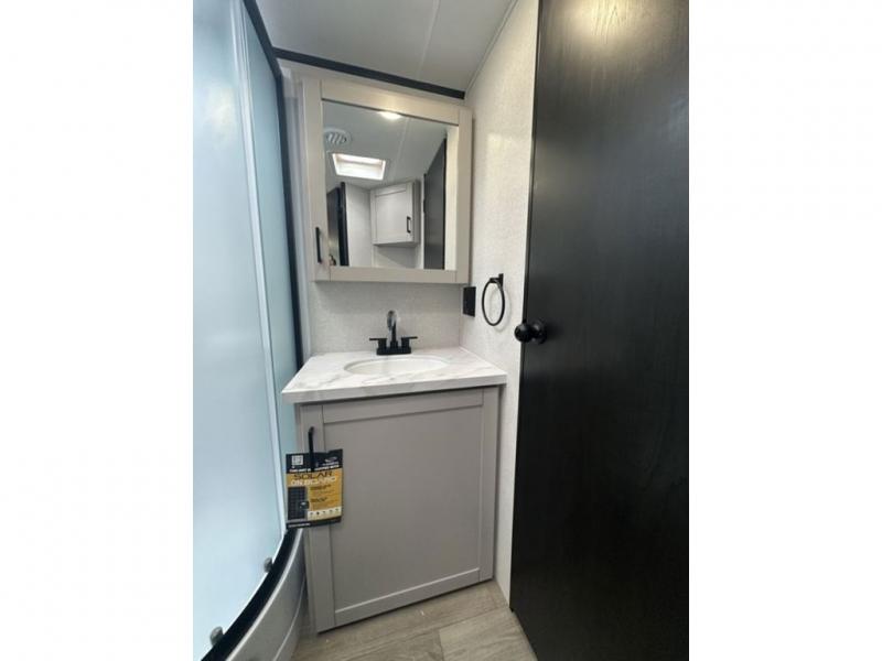 With any Jay Feather travel trailer by Jayco, you will enjoy lightweight towing, convenient exterior amenities, and at-home comforts inside! The Overlander 1 Solar Package included within the Jay Sport Package comes with a 200W solar panel and a 30-amp digital controller so you can enjoy some off-grid camping. There is also a modern graphics package, Solid fold-down step with aluminum tread steps on the main entry doorstep, and Climate Shield 0 -100° F tested weather insulation package that will allow you to camp in various types of climates. The Customer Value Package will make time outdoors easier than ever with a power tongue jack and Automotive-style aluminum rims, plus radial tires with self-adjusting electric brakes. More exterior features include a Keyed-Alike doors, a Magnum Truss roof system, and the list goes on! And we haven't even touched on the interior comforts, like the seamless countertops and Residential vinyl flooring throughout, decorative kitchen backsplash, handcrafted hardwood door/drawer fronts, and multiple USB charging ports to keep you going!