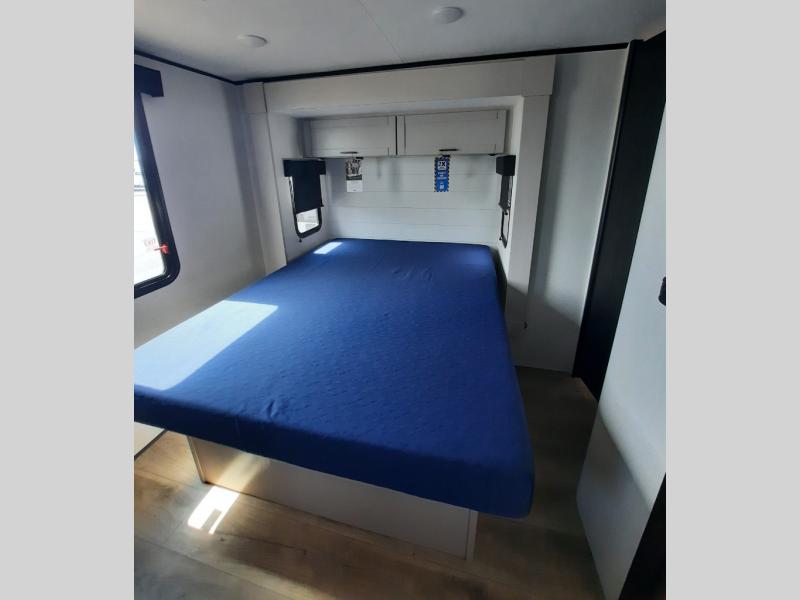 With any Jay Feather travel trailer by Jayco, you will enjoy lightweight towing, convenient exterior amenities, and at-home comforts inside! The Overlander 1 Solar Package included within the Jay Sport Package comes with a 200W solar panel and a 30-amp digital controller so you can enjoy some off-grid camping. There is also a modern graphics package, Solid fold-down step with aluminum tread steps on the main entry doorstep, and Climate Shield 0 -100° F tested weather insulation package that will allow you to camp in various types of climates. The Customer Value Package will make time outdoors easier than ever with a power tongue jack and Automotive-style aluminum rims, plus radial tires with self-adjusting electric brakes. More exterior features include a Keyed-Alike doors, a Magnum Truss roof system, and the list goes on! And we haven't even touched on the interior comforts, like the seamless countertops and Residential vinyl flooring throughout, decorative kitchen backsplash, handcrafted hardwood door/drawer fronts, and multiple USB charging ports to keep you going!