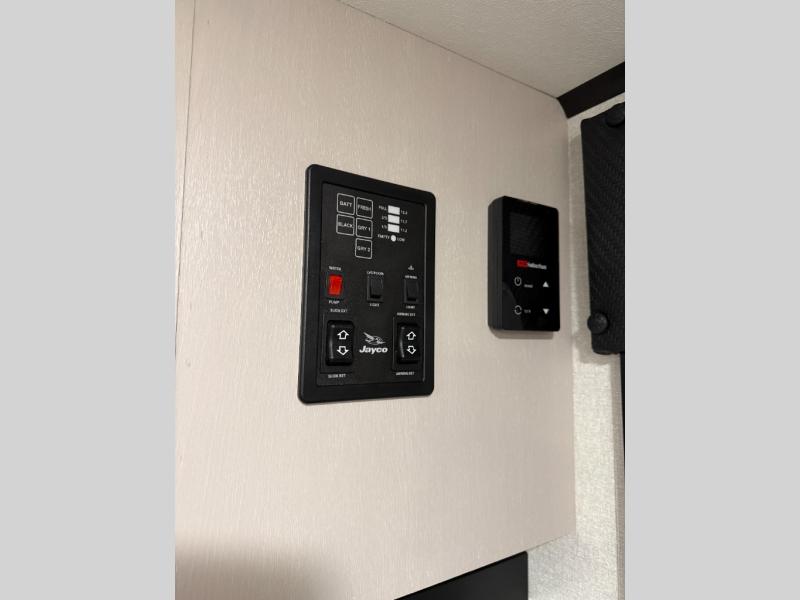 With any Jay Feather travel trailer by Jayco, you will enjoy lightweight towing, convenient exterior amenities, and at-home comforts inside! The Overlander 1 Solar Package included within the Jay Sport Package comes with a 200W solar panel and a 30-amp digital controller so you can enjoy some off-grid camping. There is also a modern graphics package, Solid fold-down step with aluminum tread steps on the main entry doorstep, and Climate Shield 0 -100° F tested weather insulation package that will allow you to camp in various types of climates. The Customer Value Package will make time outdoors easier than ever with a power tongue jack and Automotive-style aluminum rims, plus radial tires with self-adjusting electric brakes. More exterior features include a Keyed-Alike doors, a Magnum Truss roof system, and the list goes on! And we haven't even touched on the interior comforts, like the seamless countertops and Residential vinyl flooring throughout, decorative kitchen backsplash, handcrafted hardwood door/drawer fronts, and multiple USB charging ports to keep you going!