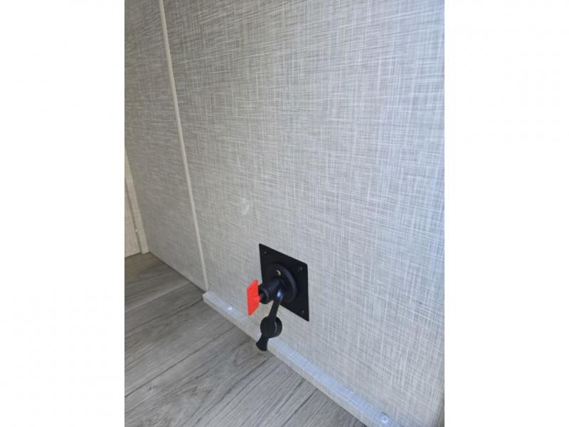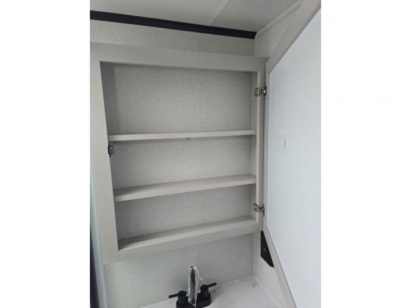 Step inside this spacious travel trailer through the front entry and you find the front kitchen that spans the width of the unit, providing plenty of counter space for meal prep. The kitchen is fully equipped with a stainless-steel sink, a decorative backsplash, a 3-burner cooktop, and an 11-cu. ft. 12V refrigerator, perfect for storing all your groceries. Overhead shelves offer convenient storage, and a pantry adds extra space for essentials. Next to the kitchen, you’ll find 60" theater seating, ideal for enjoying meals or watching your favorite shows on the LED Smart TV. As you move down the hall, you’ll come to a full bathroom featuring a radius shower and two entry doors for easy access. At the rear of the trailer, the comfortable bedroom features a 60" x 80" Queen bed, a sliding mirror door closet for added storage, and a second entry door to the exterior.