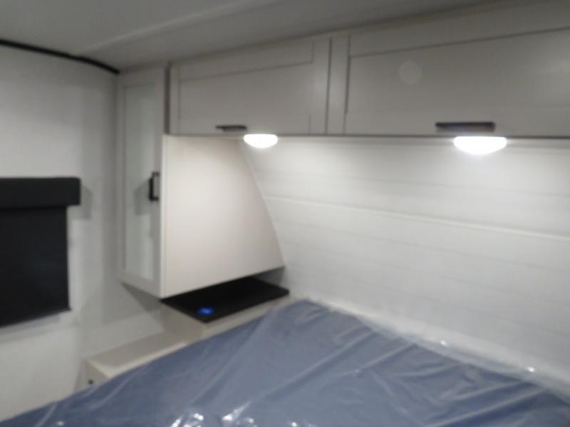 With any Jay Feather travel trailer by Jayco, you will enjoy lightweight towing, convenient exterior amenities, and at-home comforts inside! The Overlander 1 Solar Package included within the Jay Sport Package comes with a 200W solar panel and a 30-amp digital controller so you can enjoy some off-grid camping. There is also a modern graphics package with a dual-colored sidewall, LCI Solid Step fold-down aluminum tread steps on the main entry door, and Climate Shield 0 -100° F tested weather insulation package that will allow you to camp in all sorts of climates. The Customer Value Package will make time outdoors easier than ever with a power tongue jack and a Rock Solid stabilizer system, plus American-made nitro-filled Goodyear tires with self-adjusting electric brakes. More exterior features include a Keyed-Alike locking system, marine grade exterior speakers, a Magnum Truss roof system, and the list goes on! And we haven't even touched on the interior comforts, like the residential style seamless countertops and vinyl flooring throughout, decorative backsplash, handcrafted hardwood door/drawer fronts, and multiple USB charging ports to keep you going!