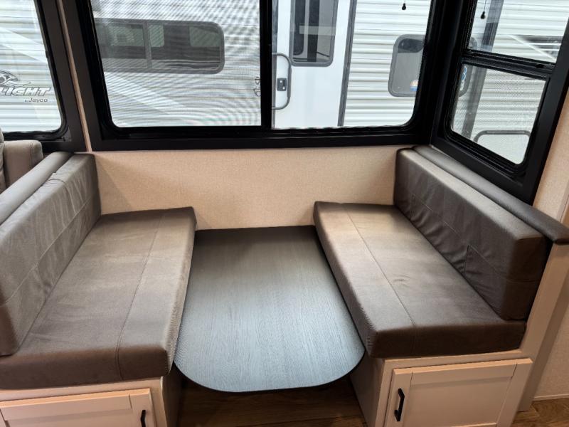 With any Jay Feather travel trailer by Jayco, you will enjoy lightweight towing, convenient exterior amenities, and at-home comforts inside! The Overlander 1 Solar Package included within the Jay Sport Package comes with a 200W solar panel and a 30-amp digital controller so you can enjoy some off-grid camping. There is also a modern graphics package with a dual-colored sidewall, LCI Solid Step fold-down aluminum tread steps on the main entry door, and Climate Shield 0 -100° F tested weather insulation package that will allow you to camp in all sorts of climates. The Customer Value Package will make time outdoors easier than ever with a power tongue jack and a Rock Solid stabilizer system, plus American-made nitro-filled Goodyear tires with self-adjusting electric brakes. More exterior features include a Keyed-Alike locking system, marine grade exterior speakers, a Magnum Truss roof system, and the list goes on! And we haven't even touched on the interior comforts, like the residential style seamless countertops and vinyl flooring throughout, decorative backsplash, handcrafted hardwood door/drawer fronts, and multiple USB charging ports to keep you going!
