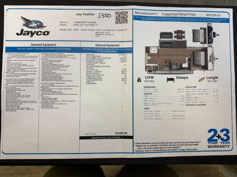 New 2026 Jayco Jay Feather 25RB Travel Trailer