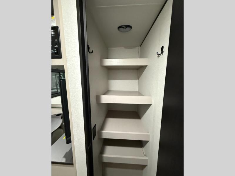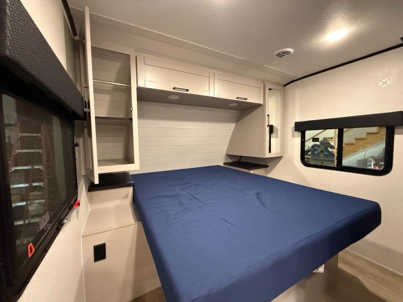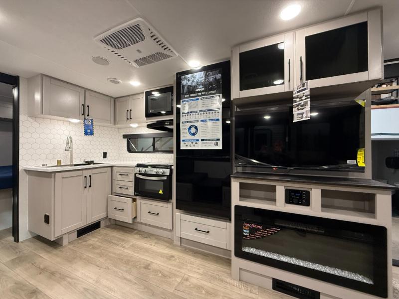 With any Jay Feather travel trailer by Jayco, you will enjoy lightweight towing, convenient exterior amenities, and at-home comforts inside! The Overlander 1 Solar Package included within the Jay Sport Package comes with a 200W solar panel and a 30-amp digital controller so you can enjoy some off-grid camping. There is also a modern graphics package, Solid fold-down step with aluminum tread steps on the main entry doorstep, and Climate Shield 0 -100° F tested weather insulation package that will allow you to camp in various types of climates. The Customer Value Package will make time outdoors easier than ever with a power tongue jack and Automotive-style aluminum rims, plus radial tires with self-adjusting electric brakes. More exterior features include a Keyed-Alike doors, a Magnum Truss roof system, and the list goes on! And we haven't even touched on the interior comforts, like the seamless countertops and Residential vinyl flooring throughout, decorative kitchen backsplash, handcrafted hardwood door/drawer fronts, and multiple USB charging ports to keep you going!