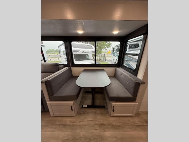 With any Jay Feather travel trailer by Jayco, you will enjoy lightweight towing, convenient exterior amenities, and at-home comforts inside! The Overlander 1 Solar Package included within the Jay Sport Package comes with a 200W solar panel and a 30-amp digital controller so you can enjoy some off-grid camping. There is also a modern graphics package, Solid fold-down step with aluminum tread steps on the main entry doorstep, and Climate Shield 0 -100° F tested weather insulation package that will allow you to camp in various types of climates. The Customer Value Package will make time outdoors easier than ever with a power tongue jack and Automotive-style aluminum rims, plus radial tires with self-adjusting electric brakes. More exterior features include a Keyed-Alike doors, a Magnum Truss roof system, and the list goes on! And we haven't even touched on the interior comforts, like the seamless countertops and Residential vinyl flooring throughout, decorative kitchen backsplash, handcrafted hardwood door/drawer fronts, and multiple USB charging ports to keep you going!