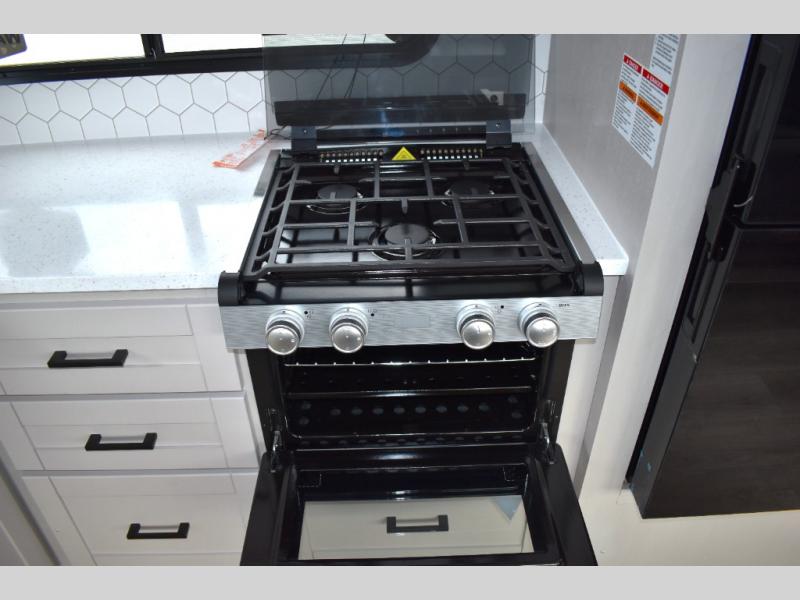 With any Jay Feather travel trailer by Jayco, you will enjoy lightweight towing, convenient exterior amenities, and at-home comforts inside! The Overlander 1 Solar Package included within the Jay Sport Package comes with a 200W solar panel and a 30-amp digital controller so you can enjoy some off-grid camping. There is also a modern graphics package with a dual-colored sidewall, LCI Solid Step fold-down aluminum tread steps on the main entry door, and Climate Shield 0 -100° F tested weather insulation package that will allow you to camp in all sorts of climates. The Customer Value Package will make time outdoors easier than ever with a power tongue jack and a Rock Solid stabilizer system, plus American-made nitro-filled Goodyear tires with self-adjusting electric brakes. More exterior features include a Keyed-Alike locking system, marine grade exterior speakers, a Magnum Truss roof system, and the list goes on! And we haven't even touched on the interior comforts, like the residential style seamless countertops and vinyl flooring throughout, decorative backsplash, handcrafted hardwood door/drawer fronts, and multiple USB charging ports to keep you going!