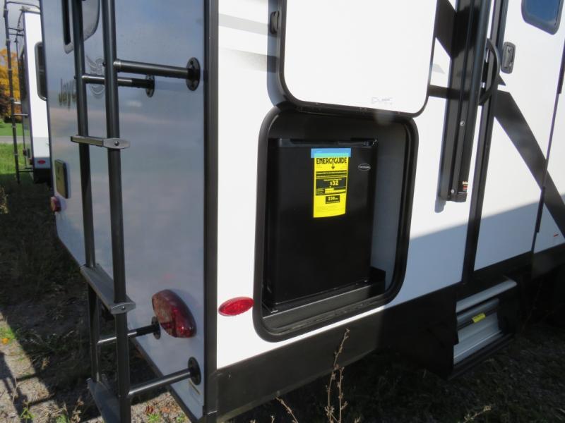 With any Jay Feather travel trailer by Jayco, you will enjoy lightweight towing, convenient exterior amenities, and at-home comforts inside! The Overlander 1 Solar Package included within the Jay Sport Package comes with a 200W solar panel and a 30-amp digital controller so you can enjoy some off-grid camping. There is also a modern graphics package, Solid fold-down step with aluminum tread steps on the main entry doorstep, and Climate Shield 0 -100° F tested weather insulation package that will allow you to camp in various types of climates. The Customer Value Package will make time outdoors easier than ever with a power tongue jack and Automotive-style aluminum rims, plus radial tires with self-adjusting electric brakes. More exterior features include a Keyed-Alike doors, a Magnum Truss roof system, and the list goes on! And we haven't even touched on the interior comforts, like the seamless countertops and Residential vinyl flooring throughout, decorative kitchen backsplash, handcrafted hardwood door/drawer fronts, and multiple USB charging ports to keep you going!