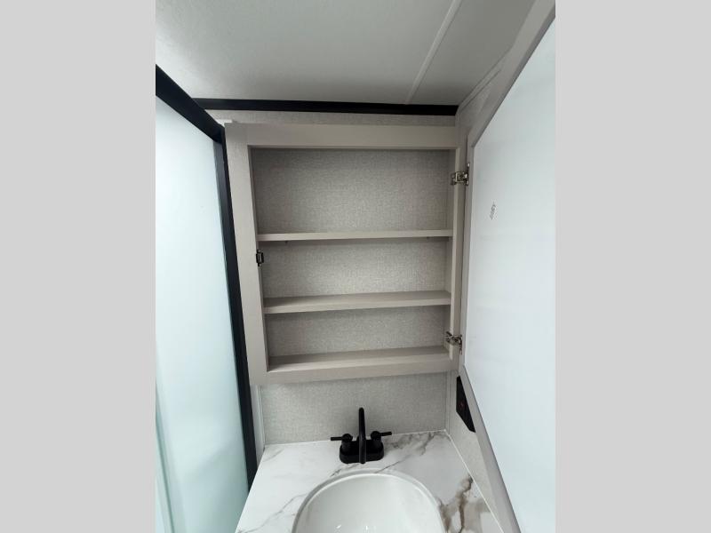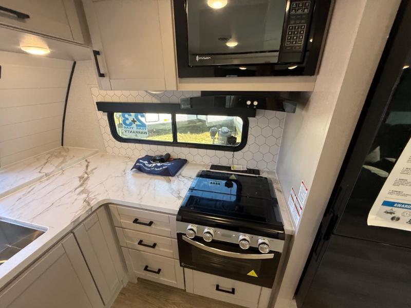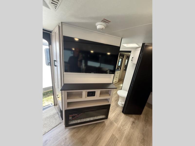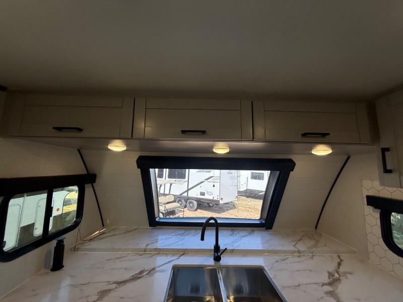 Spacious countertops, ample prep room, and an 11 cu. ft. 12V refrigerator make the front kitchen a true standout. Whether prepping breakfast at sunrise or serving up campfire snacks, this kitchen keeps everything within reach.