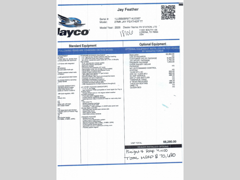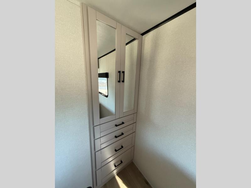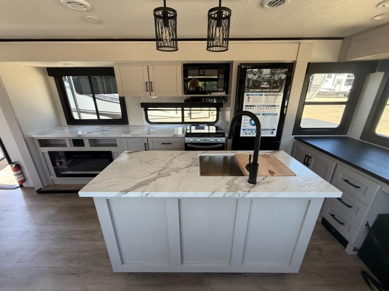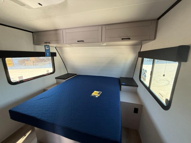 With any Jay Feather travel trailer by Jayco, you will enjoy lightweight towing, convenient exterior amenities, and at-home comforts inside! The Overlander 1 Solar Package included within the Jay Sport Package comes with a 200W solar panel and a 30-amp digital controller so you can enjoy some off-grid camping. There is also a modern graphics package with a dual-colored sidewall, LCI Solid Step fold-down aluminum tread steps on the main entry door, and Climate Shield 0 -100° F tested weather insulation package that will allow you to camp in all sorts of climates. The Customer Value Package will make time outdoors easier than ever with a power tongue jack and a Rock Solid stabilizer system, plus American-made nitro-filled Goodyear tires with self-adjusting electric brakes. More exterior features include a Keyed-Alike locking system, marine grade exterior speakers, a Magnum Truss roof system, and the list goes on! And we haven't even touched on the interior comforts, like the residential style seamless countertops and vinyl flooring throughout, decorative backsplash, handcrafted hardwood door/drawer fronts, and multiple USB charging ports to keep you going!