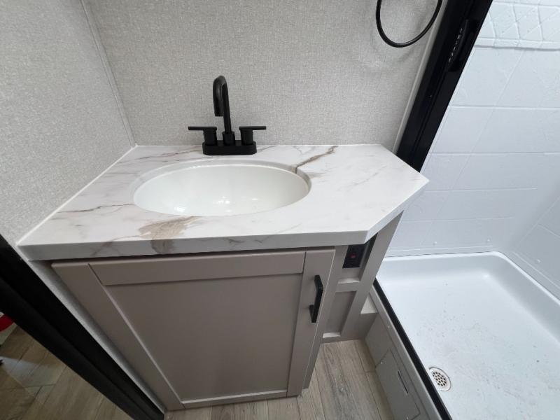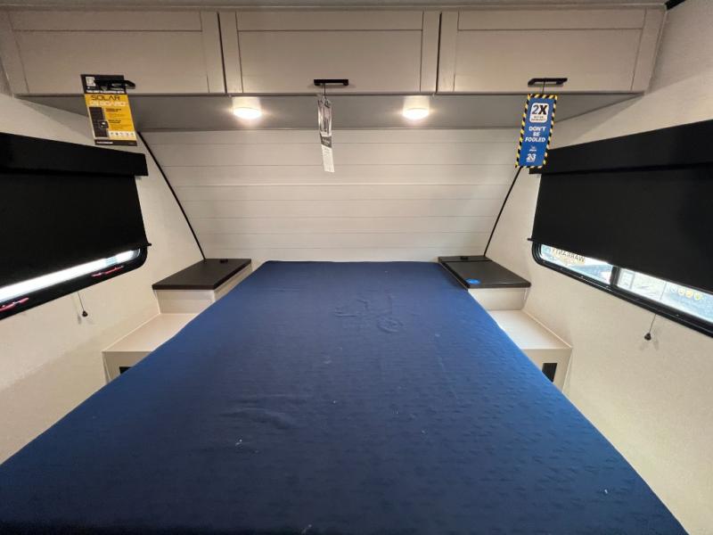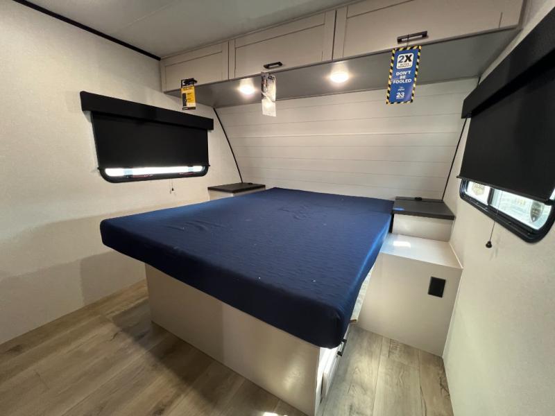 With any Jay Feather travel trailer by Jayco, you will enjoy lightweight towing, convenient exterior amenities, and at-home comforts inside! The Overlander 1 Solar Package included within the Jay Sport Package comes with a 200W solar panel and a 30-amp digital controller so you can enjoy some off-grid camping. There is also a modern graphics package with a dual-colored sidewall, LCI Solid Step fold-down aluminum tread steps on the main entry door, and Climate Shield 0 -100° F tested weather insulation package that will allow you to camp in all sorts of climates. The Customer Value Package will make time outdoors easier than ever with a power tongue jack and a Rock Solid stabilizer system, plus American-made nitro-filled Goodyear tires with self-adjusting electric brakes. More exterior features include a Keyed-Alike locking system, marine grade exterior speakers, a Magnum Truss roof system, and the list goes on! And we haven't even touched on the interior comforts, like the residential style seamless countertops and vinyl flooring throughout, decorative backsplash, handcrafted hardwood door/drawer fronts, and multiple USB charging ports to keep you going!