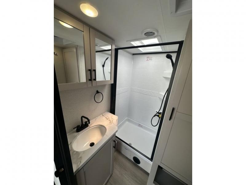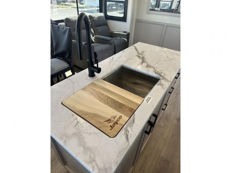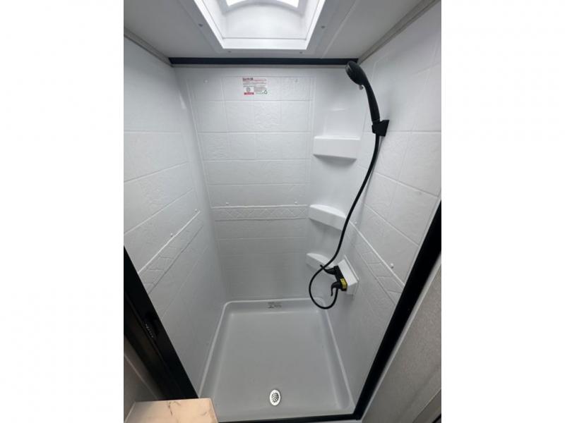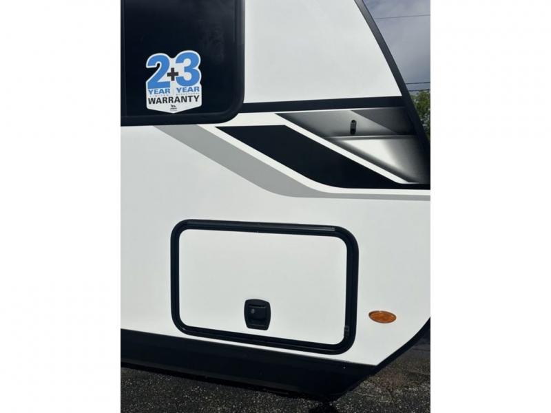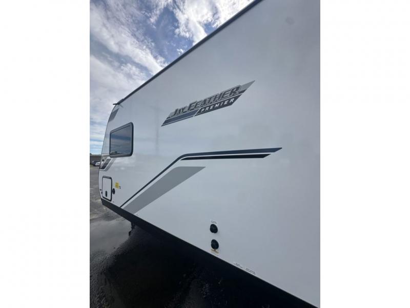 With any Jay Feather travel trailer by Jayco, you will enjoy lightweight towing, convenient exterior amenities, and at-home comforts inside! The Overlander 1 Solar Package included within the Jay Sport Package comes with a 200W solar panel and a 30-amp digital controller so you can enjoy some off-grid camping. There is also a modern graphics package with a dual-colored sidewall, LCI Solid Step fold-down aluminum tread steps on the main entry door, and Climate Shield 0 -100° F tested weather insulation package that will allow you to camp in all sorts of climates. The Customer Value Package will make time outdoors easier than ever with a power tongue jack and a Rock Solid stabilizer system, plus American-made nitro-filled Goodyear tires with self-adjusting electric brakes. More exterior features include a Keyed-Alike locking system, marine grade exterior speakers, a Magnum Truss roof system, and the list goes on! And we haven't even touched on the interior comforts, like the residential style seamless countertops and vinyl flooring throughout, decorative backsplash, handcrafted hardwood door/drawer fronts, and multiple USB charging ports to keep you going!