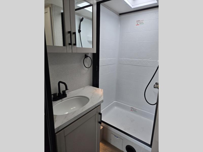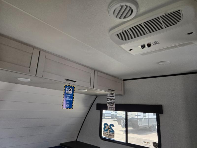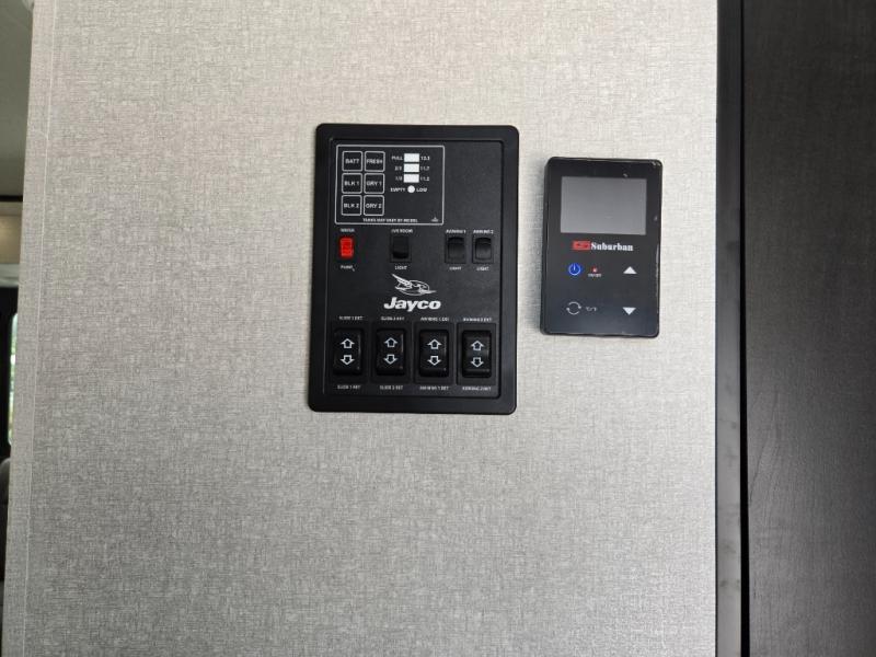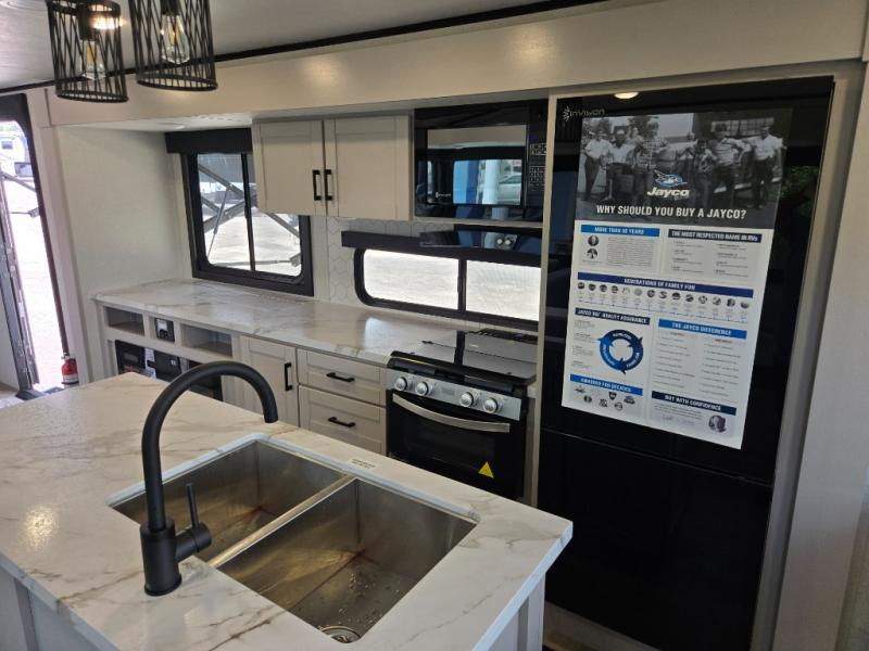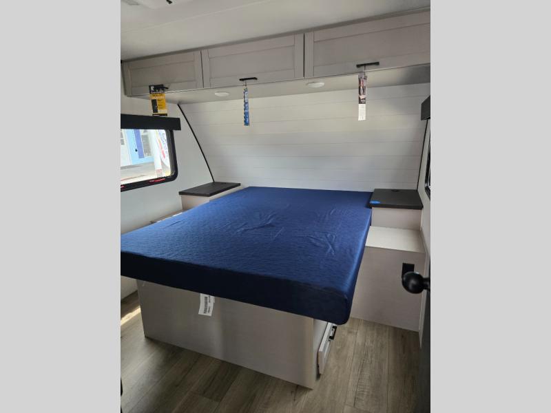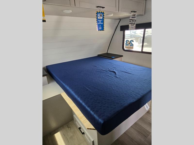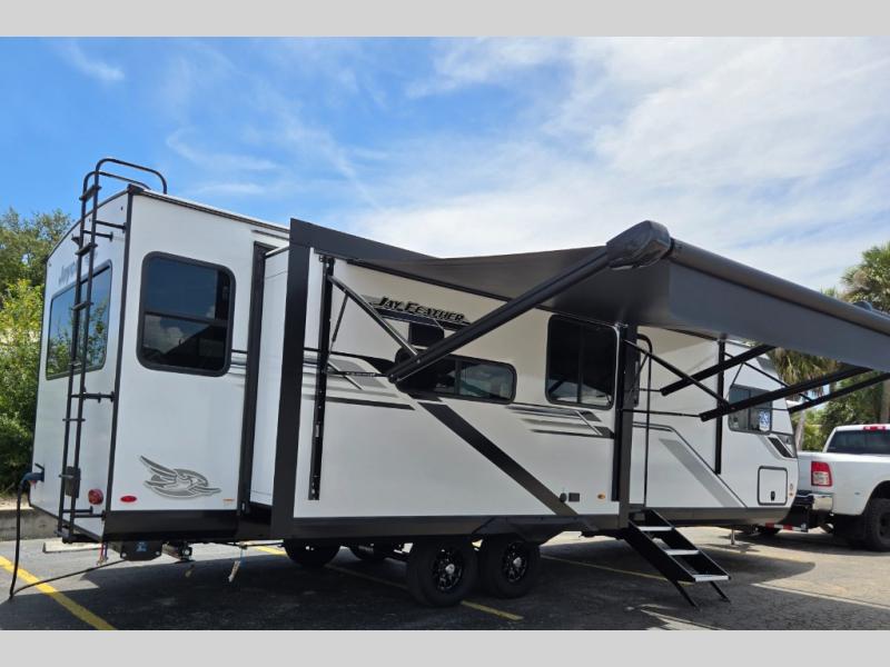 With any Jay Feather travel trailer by Jayco, you will enjoy lightweight towing, convenient exterior amenities, and at-home comforts inside! The Overlander 1 Solar Package included within the Jay Sport Package comes with a 200W solar panel and a 30-amp digital controller so you can enjoy some off-grid camping. There is also a modern graphics package with a dual-colored sidewall, LCI Solid Step fold-down aluminum tread steps on the main entry door, and Climate Shield 0 -100° F tested weather insulation package that will allow you to camp in all sorts of climates. The Customer Value Package will make time outdoors easier than ever with a power tongue jack and a Rock Solid stabilizer system, plus American-made nitro-filled Goodyear tires with self-adjusting electric brakes. More exterior features include a Keyed-Alike locking system, marine grade exterior speakers, a Magnum Truss roof system, and the list goes on! And we haven't even touched on the interior comforts, like the residential style seamless countertops and vinyl flooring throughout, decorative backsplash, handcrafted hardwood door/drawer fronts, and multiple USB charging ports to keep you going!