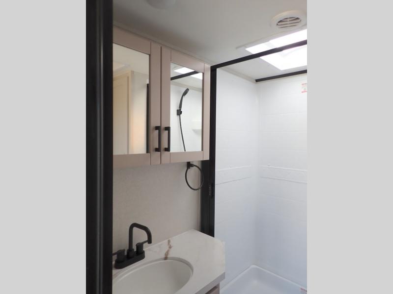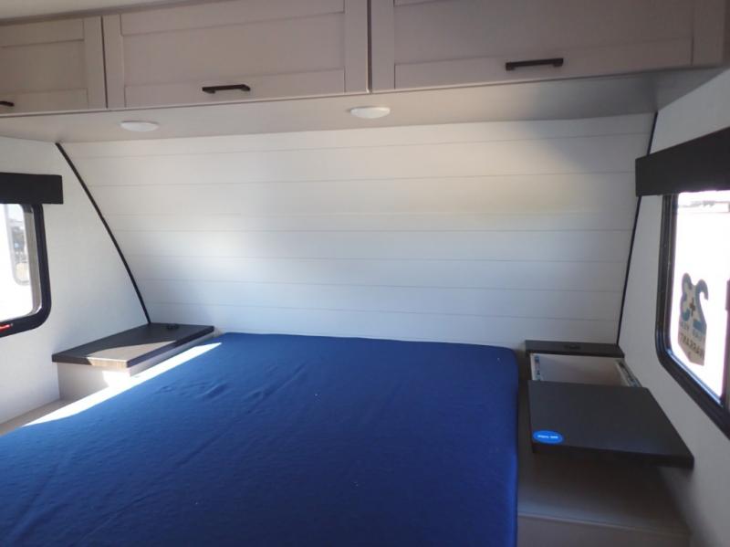 With any Jay Feather travel trailer by Jayco, you will enjoy lightweight towing, convenient exterior amenities, and at-home comforts inside! The Overlander 1 Solar Package included within the Jay Sport Package comes with a 200W solar panel and a 30-amp digital controller so you can enjoy some off-grid camping. There is also a modern graphics package with a dual-colored sidewall, LCI Solid Step fold-down aluminum tread steps on the main entry door, and Climate Shield 0 -100° F tested weather insulation package that will allow you to camp in all sorts of climates. The Customer Value Package will make time outdoors easier than ever with a power tongue jack and a Rock Solid stabilizer system, plus American-made nitro-filled Goodyear tires with self-adjusting electric brakes. More exterior features include a Keyed-Alike locking system, marine grade exterior speakers, a Magnum Truss roof system, and the list goes on! And we haven't even touched on the interior comforts, like the residential style seamless countertops and vinyl flooring throughout, decorative backsplash, handcrafted hardwood door/drawer fronts, and multiple USB charging ports to keep you going!