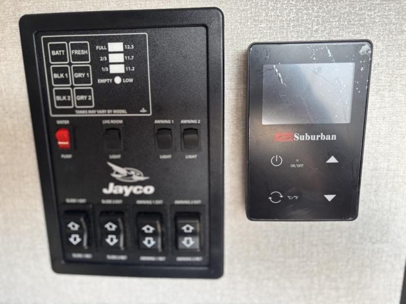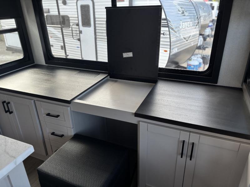 With any Jay Feather travel trailer by Jayco, you will enjoy lightweight towing, convenient exterior amenities, and at-home comforts inside! The Overlander 1 Solar Package included within the Jay Sport Package comes with a 200W solar panel and a 30-amp digital controller so you can enjoy some off-grid camping. There is also a modern graphics package with a dual-colored sidewall, LCI Solid Step fold-down aluminum tread steps on the main entry door, and Climate Shield 0 -100° F tested weather insulation package that will allow you to camp in all sorts of climates. The Customer Value Package will make time outdoors easier than ever with a power tongue jack and a Rock Solid stabilizer system, plus American-made nitro-filled Goodyear tires with self-adjusting electric brakes. More exterior features include a Keyed-Alike locking system, marine grade exterior speakers, a Magnum Truss roof system, and the list goes on! And we haven't even touched on the interior comforts, like the residential style seamless countertops and vinyl flooring throughout, decorative backsplash, handcrafted hardwood door/drawer fronts, and multiple USB charging ports to keep you going!