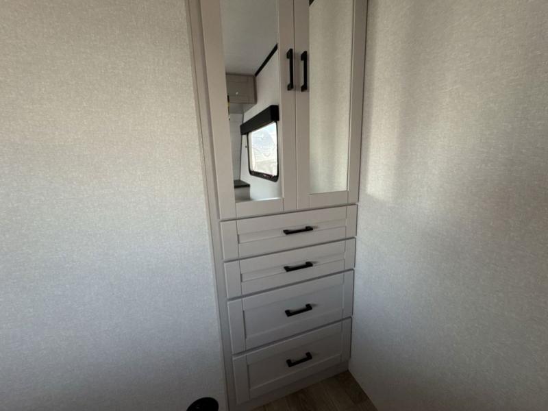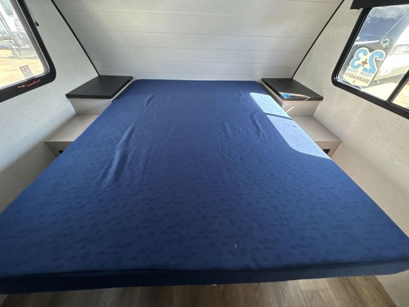 With any Jay Feather travel trailer by Jayco, you will enjoy lightweight towing, convenient exterior amenities, and at-home comforts inside! The Overlander 1 Solar Package included within the Jay Sport Package comes with a 200W solar panel and a 30-amp digital controller so you can enjoy some off-grid camping. There is also a modern graphics package with a dual-colored sidewall, LCI Solid Step fold-down aluminum tread steps on the main entry door, and Climate Shield 0 -100° F tested weather insulation package that will allow you to camp in all sorts of climates. The Customer Value Package will make time outdoors easier than ever with a power tongue jack and a Rock Solid stabilizer system, plus American-made nitro-filled Goodyear tires with self-adjusting electric brakes. More exterior features include a Keyed-Alike locking system, marine grade exterior speakers, a Magnum Truss roof system, and the list goes on! And we haven't even touched on the interior comforts, like the residential style seamless countertops and vinyl flooring throughout, decorative backsplash, handcrafted hardwood door/drawer fronts, and multiple USB charging ports to keep you going!